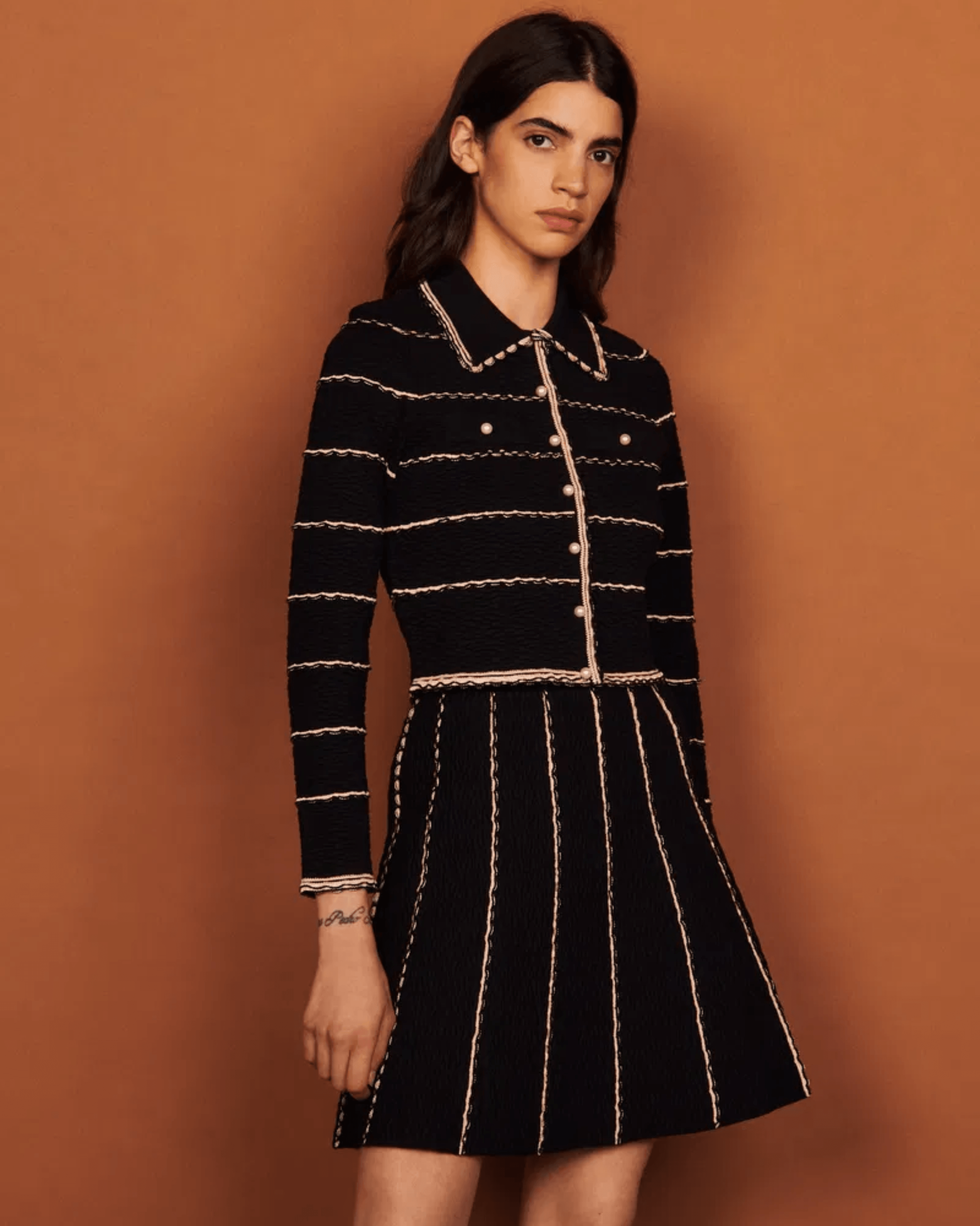 Nfinity Fine Stripe Beaded Knit Co-ord Set