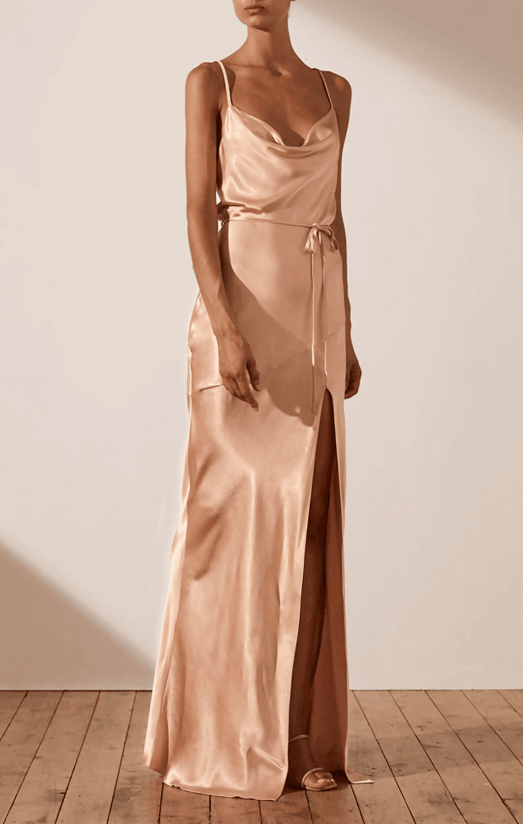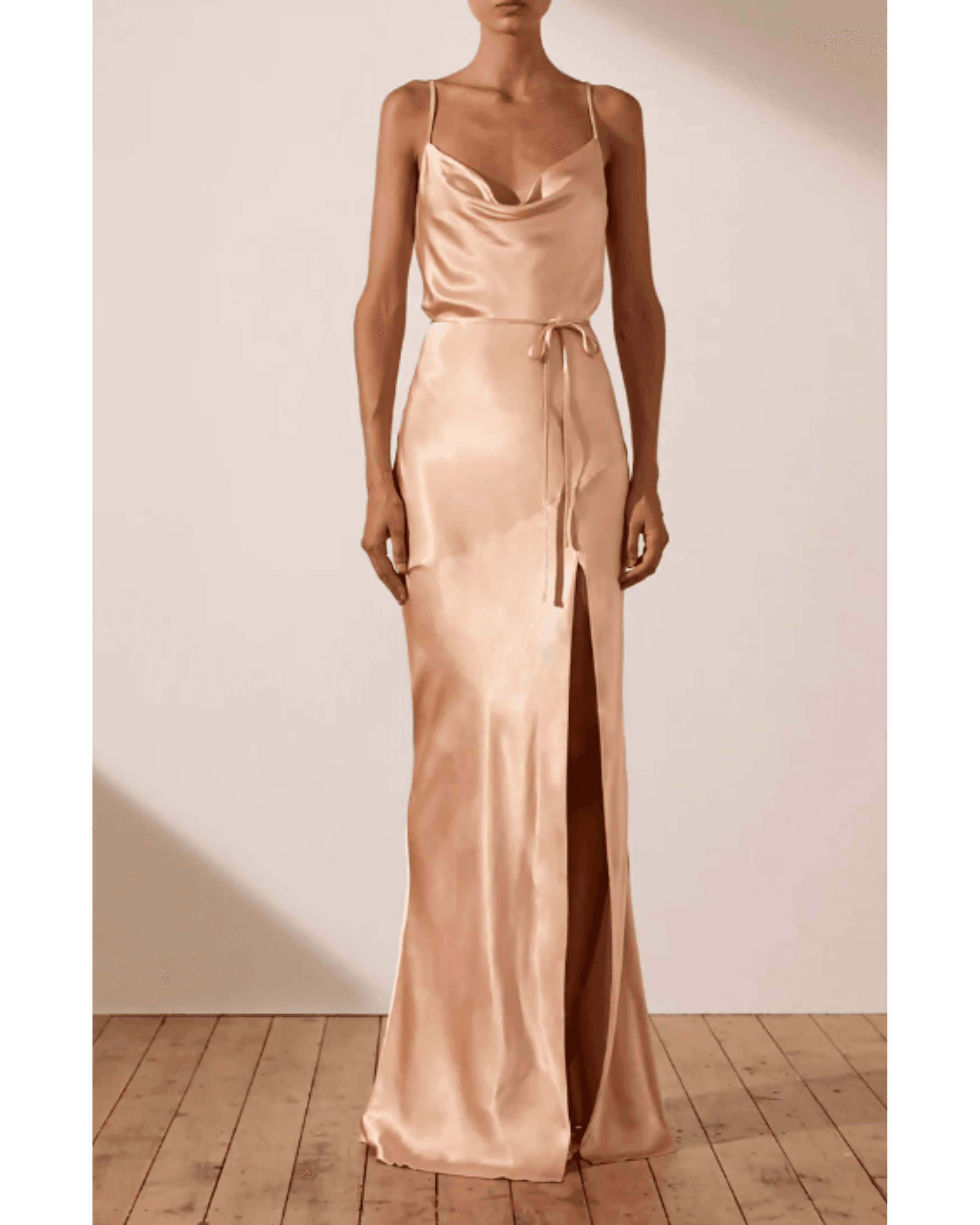 La Lune Bias Cowl Neck Maxi Dress in Desert Rose - Endless - UAE Rental and Resale for Women's Fashion