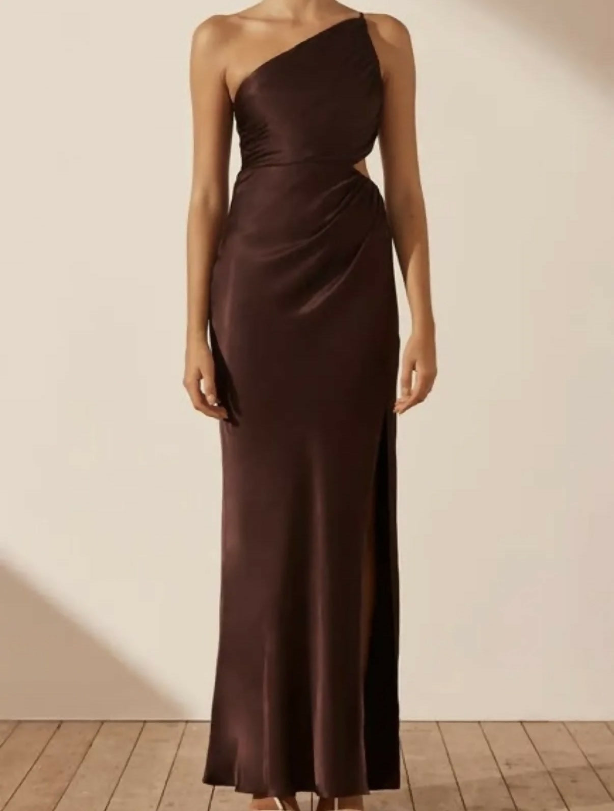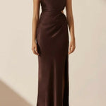 La Lune Gathered One Shoulder Maxi Dress in Cocoa