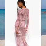 A statement set in soft snake print against a moody pink backdrop, crafted from luxe crinkle viscose. The Cobra slip skirt features a fluid silhouette with a mini floor-skimming train, while the matching blouse carries Rat & Boa’s signature ruffled shape, slit cuffs, and delicate tie details. An elegant yet playful look, versatile for both day and evening occasions.