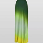 Skirt: dip-dye print, floor-sweeping length, high side slits, waist tie, drop cowl back