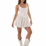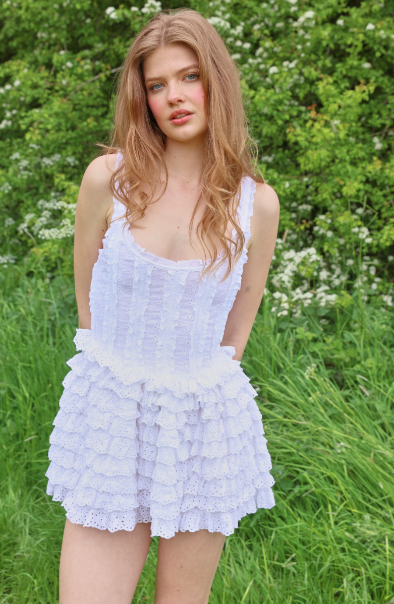 Crafted from 100% cotton broderie, the Genevieve Mini Dress features a corset-style bodice adorned with hand-crafted broderie lace. Designed with an invisible side zip and a lace-up corset back, it offers a structured yet feminine silhouette with timeless appeal.