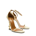 - Metal logo heel measures approximately 4 inches/ 110mm