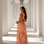 Effortlessly elegant and designed to turn heads. The Clementine maxi dress is cut from vibrant floral fabric that moves beautifully with every step. It features a flattering cut-out front, lace-up back detailing, and a flowing silhouette finished with a side split for ease and movement.