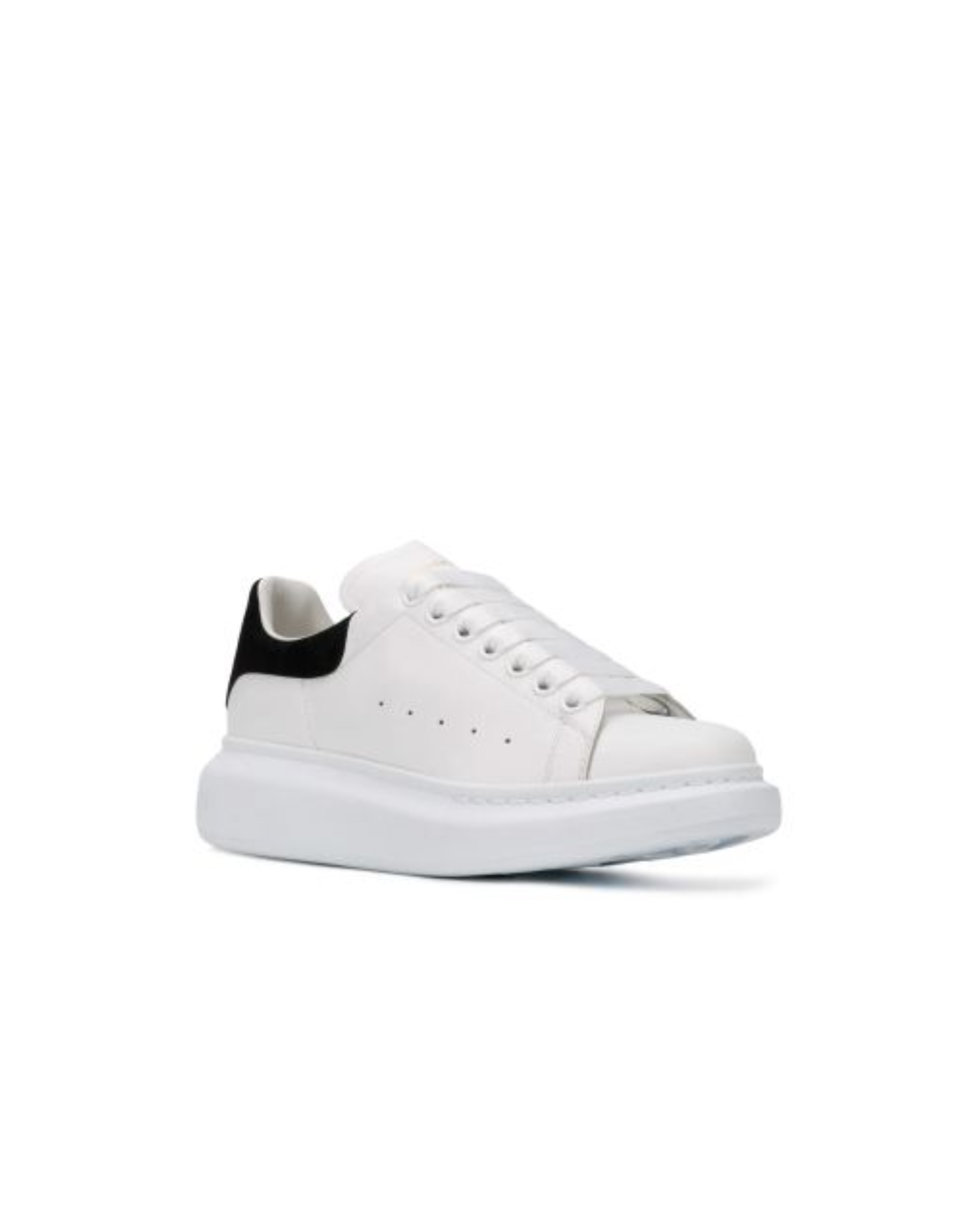 white/black calf leather perforated detailing contrasting heel counter logo-print tongue round toe front lace-up fastening oversize rubber sole branded insole These sneakers come with two pairs of interchangeable laces; one is solid-white and the other is flecked.