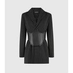 Make an impact no matter the occasion with this Pinstripe Blazer Dress with Reversible Corset. Remain classy and sophisticated all day long with its flattering shape. Perfect for the office or a night out!