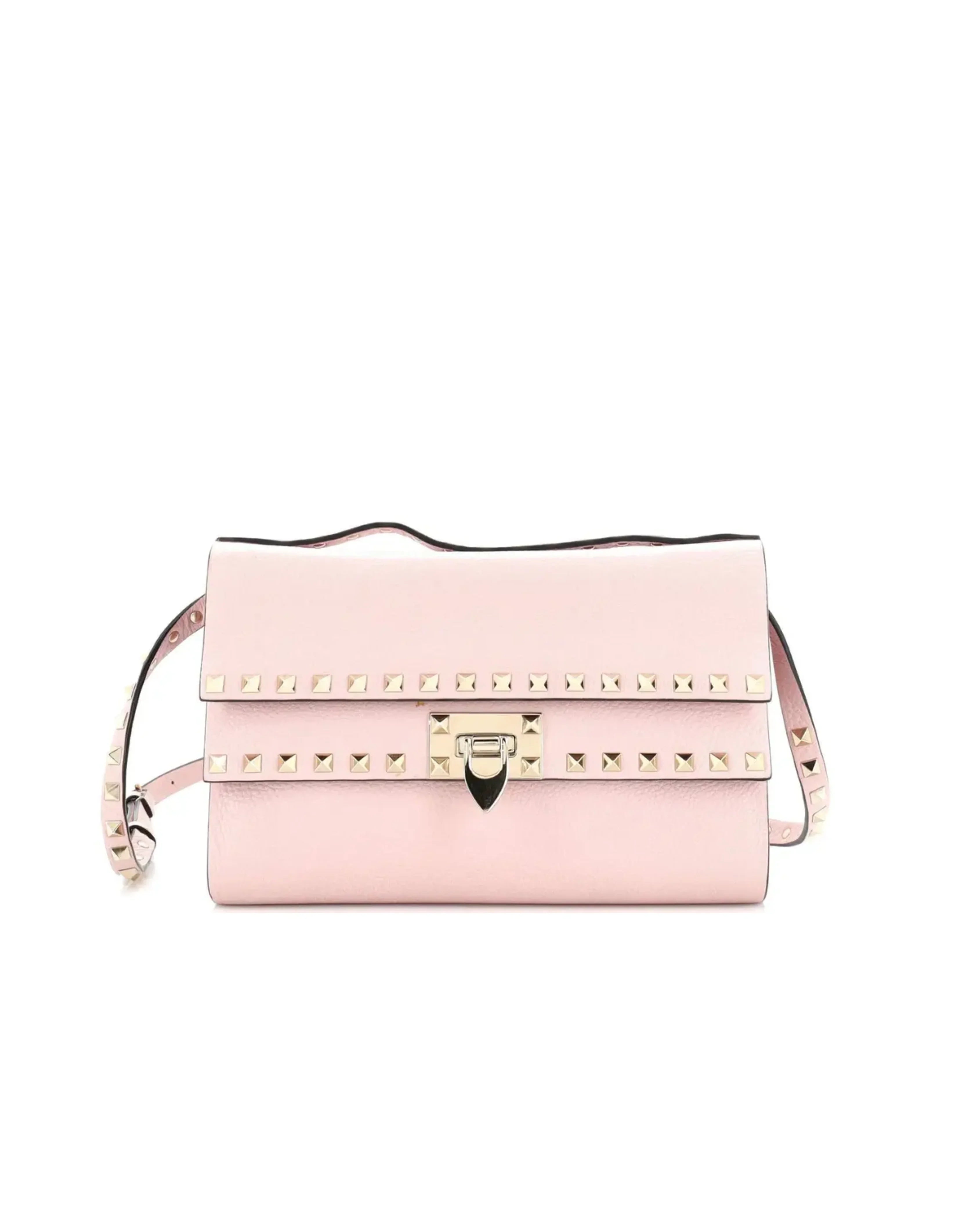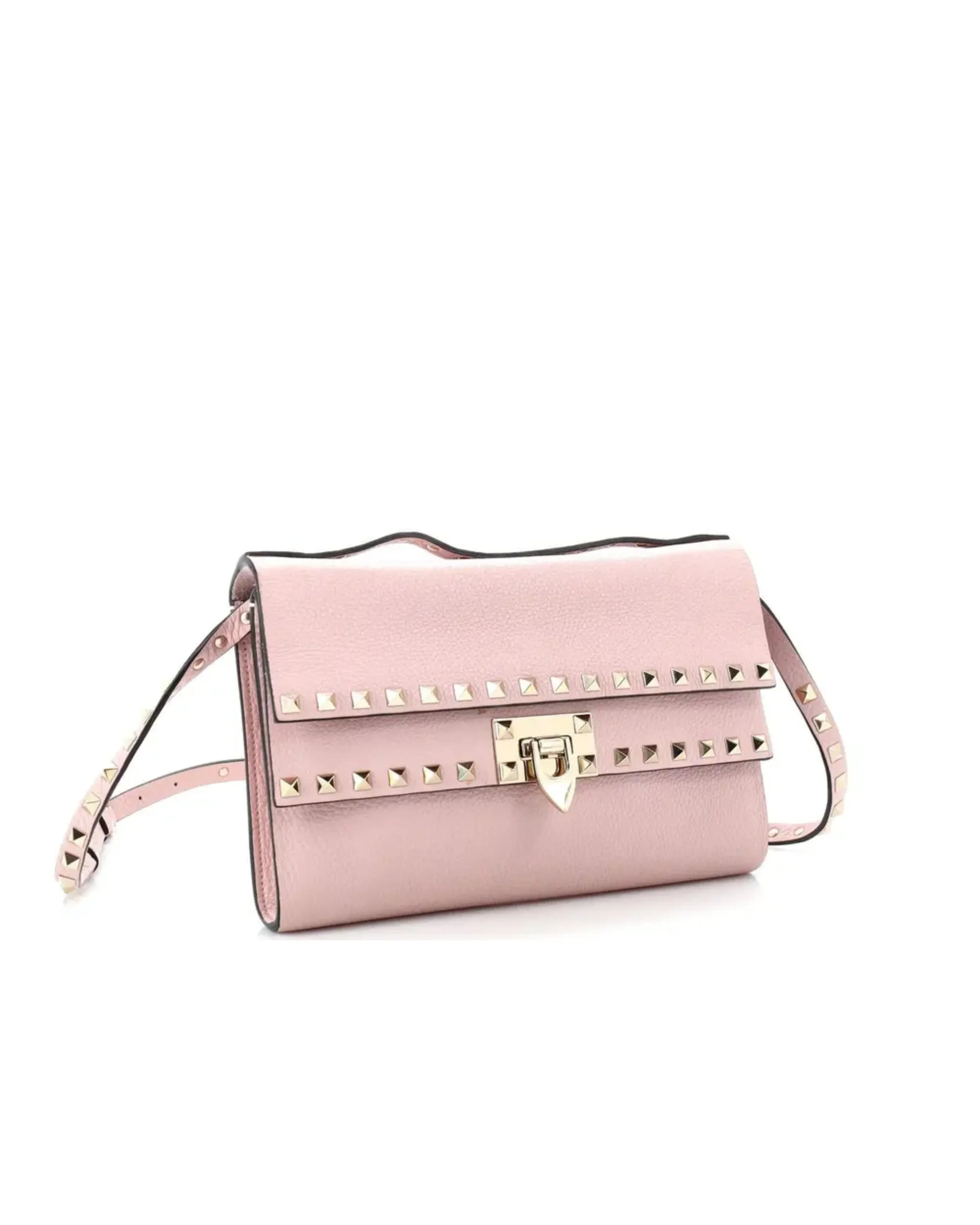 Rockstud Flip Lock Double Flap Crossbody Bag Leather