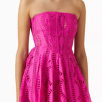 Pretty and playful, the Zannick dress from Charo Ruiz is ideal for beach parties. Spun from a cotton-rich blend, the mini dress has a fitted bodice, flared skirt and delicate eyelet embroidery throughout.