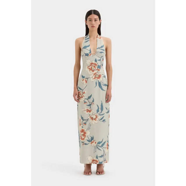 The Roisin Halter Midi Dress in Bloom Floral is a feminine silhouette crafted from our signature midweight linen patterned with hand-painted florals. It features panel lines for shaping, structured bodice with an underwire detail and a split at the side for ease of wear.