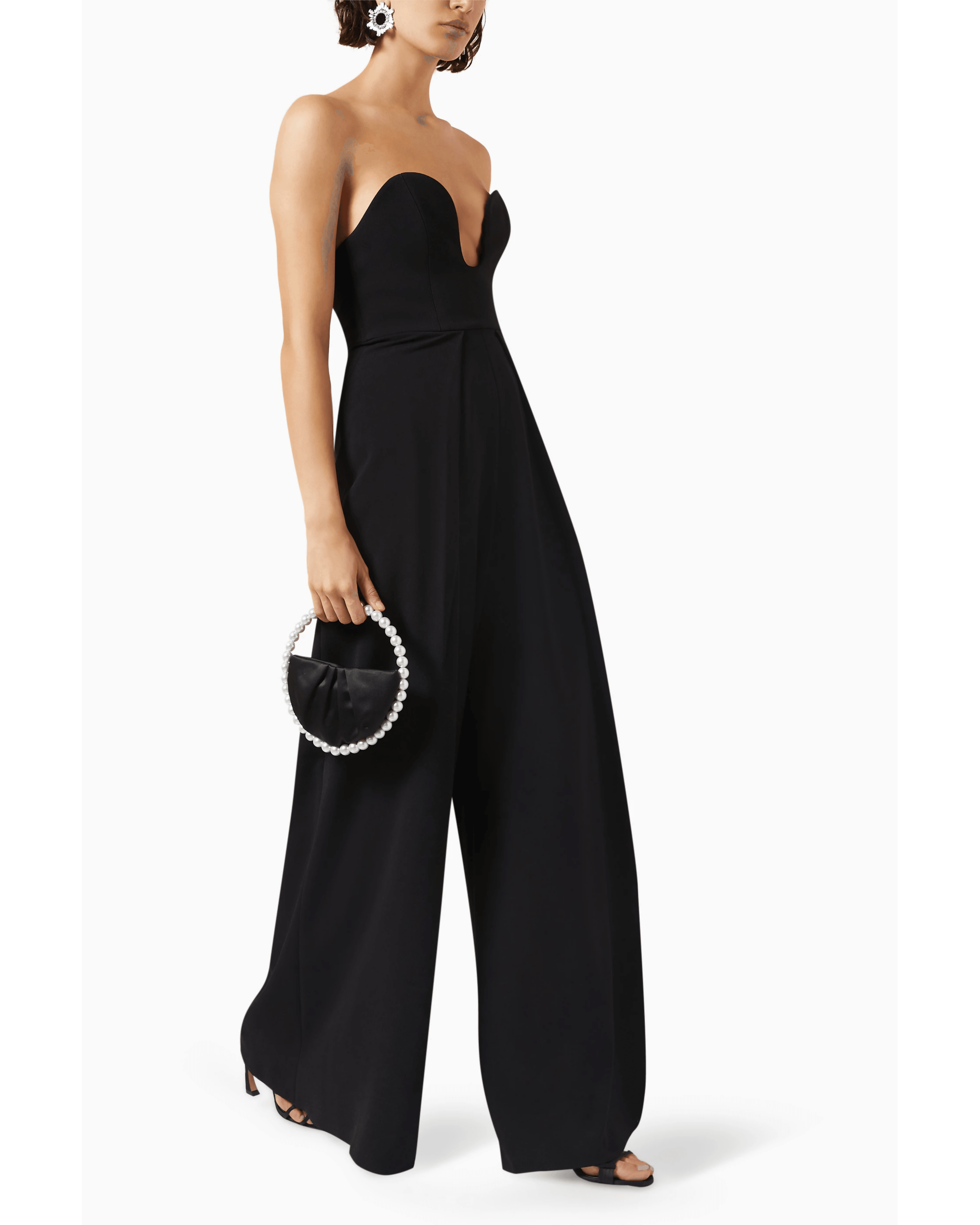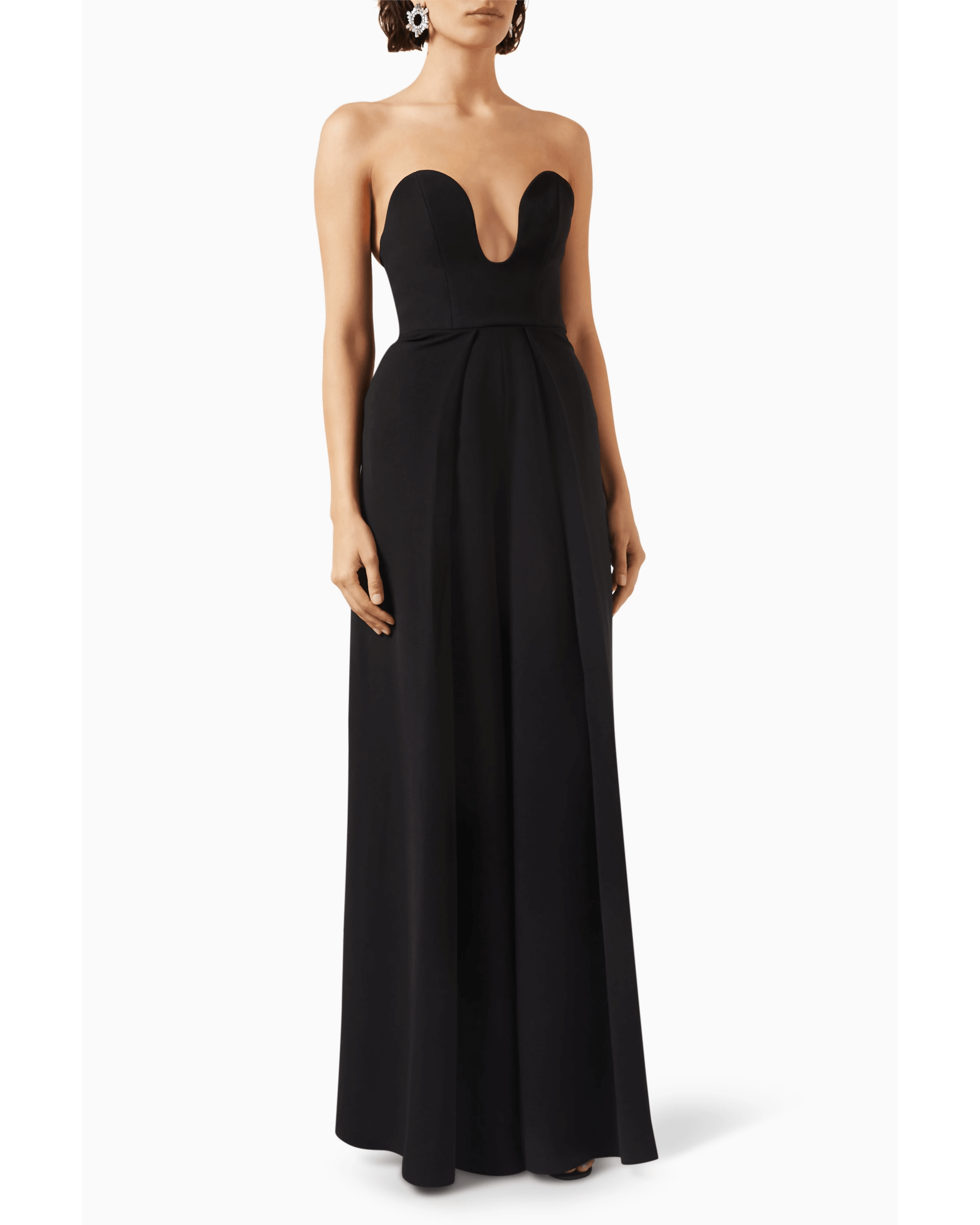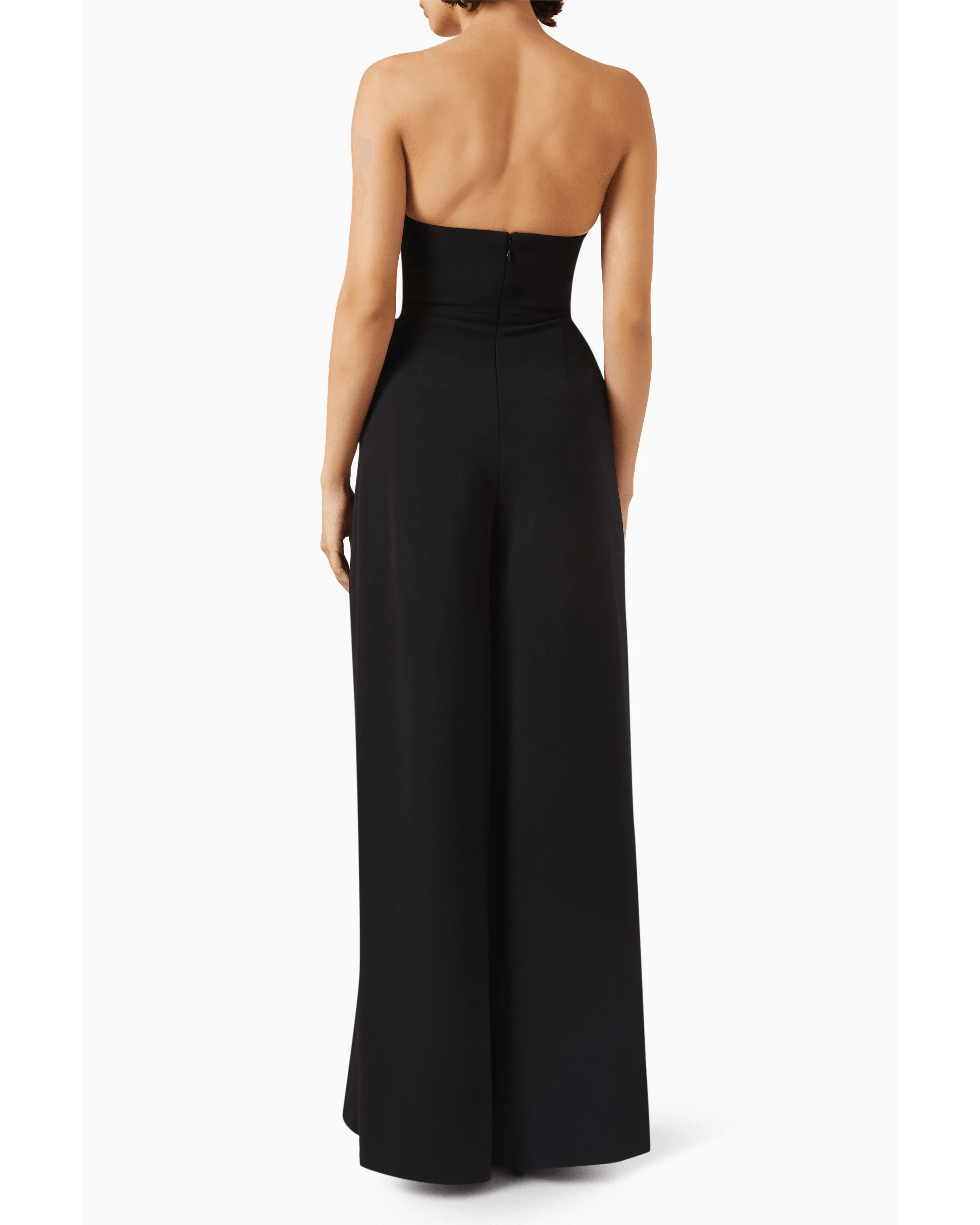 The Solace Anelli Wide-leg Jumpsuit is a head-turning piece that exudes elegance and confidence. With its plunging U-shape neckline and concealed back zip fastening, it flows into wide-leg pants that add a touch of sophistication, making it a standout choice for any occasion.