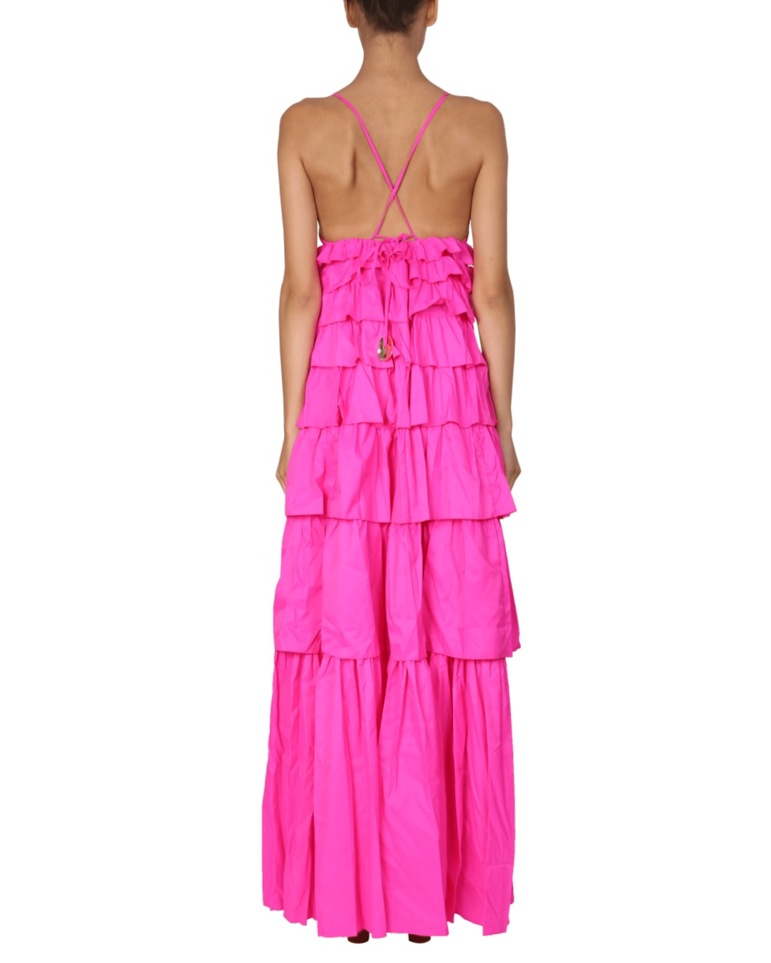 The Staud Pink Maxi Dress is a stunning embodiment of modern femininity and elegance. Crafted in a vibrant pink hue, this dress features thin straps and a sleeveless design, making it ideal for warm-weather occasions. The V-neckline adds a touch of sophistication, while the maxi length offers a graceful, flowing silhouette.