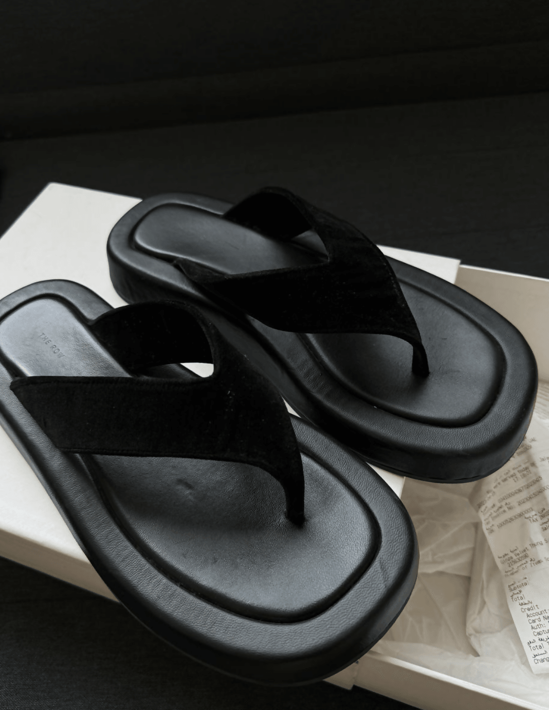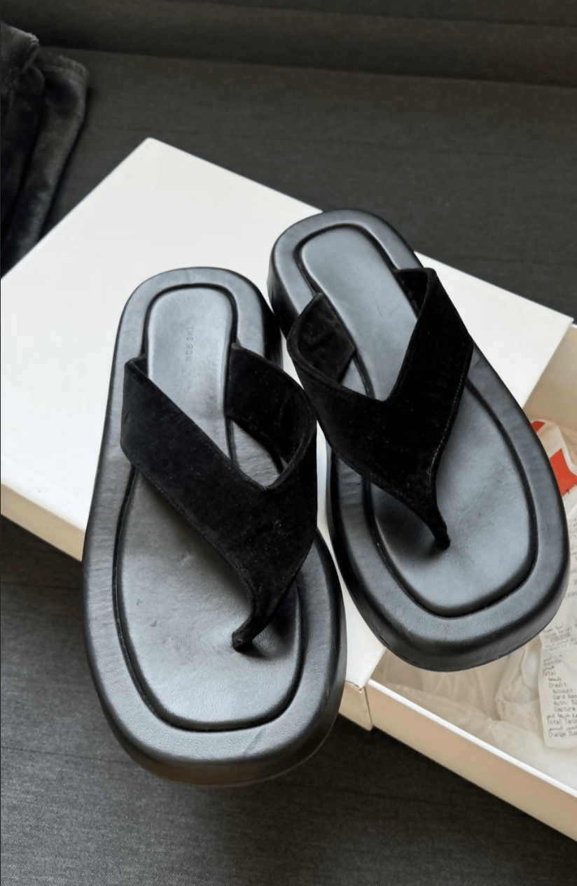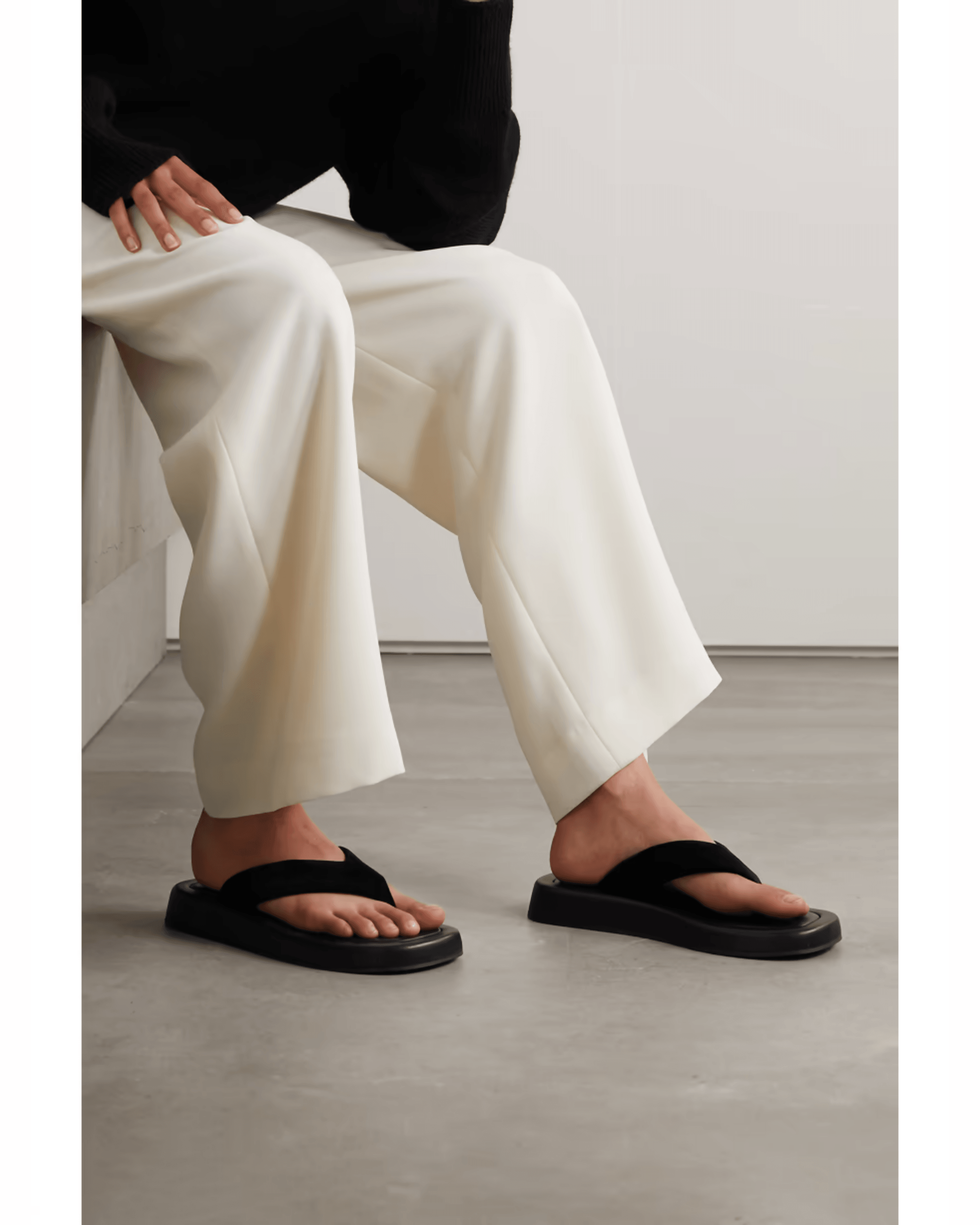 The Row's Mary-Kate and Ashley Olsen understand that busy lifestyles call for practical yet stylish shoes, like these 'Ginza' flip flops. They've been made in Italy from smooth leather and velvet and have cushioned insoles so you can comfortably wear them all day. Style yours with anything from suiting to dresses.