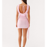 All about the drama. The Good Fortune Mini Dress features an off-shoulder neckline and a low back cowl that adds a touch of sultry sophistication.