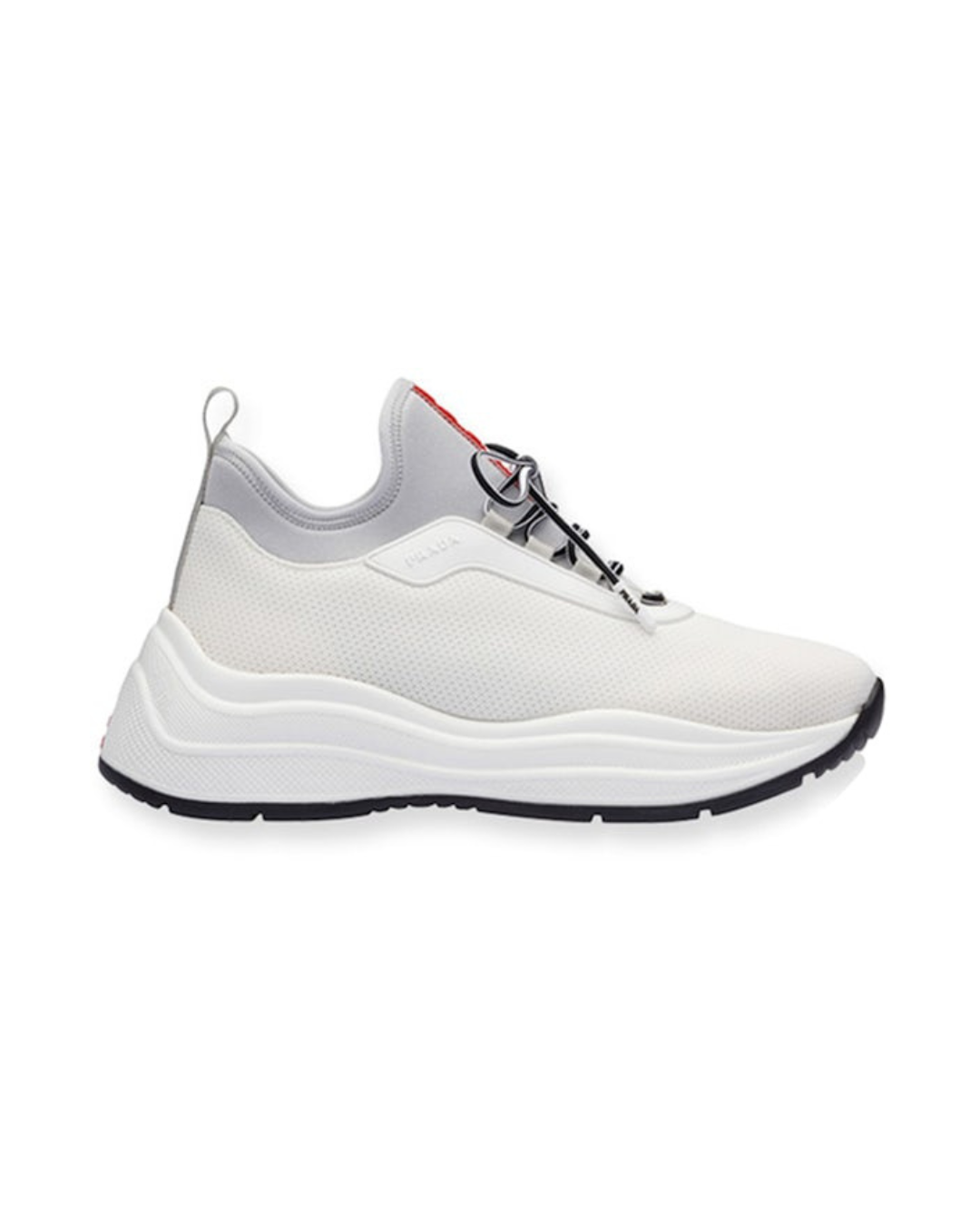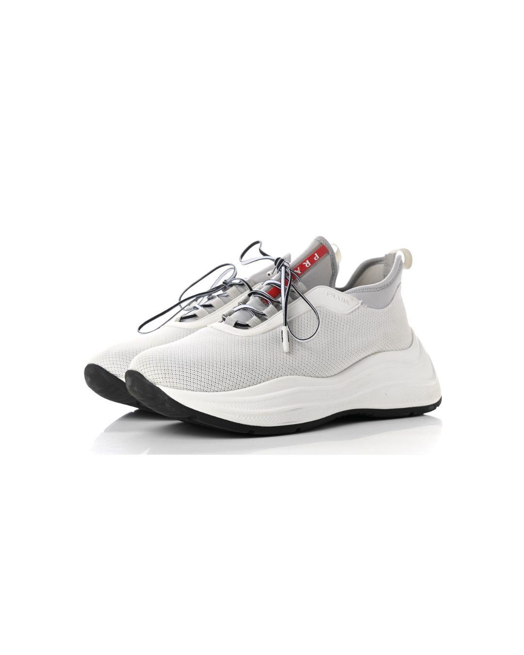 These stylish sneakers are crafted of white neoprene and mesh detailing with white rubber soles.