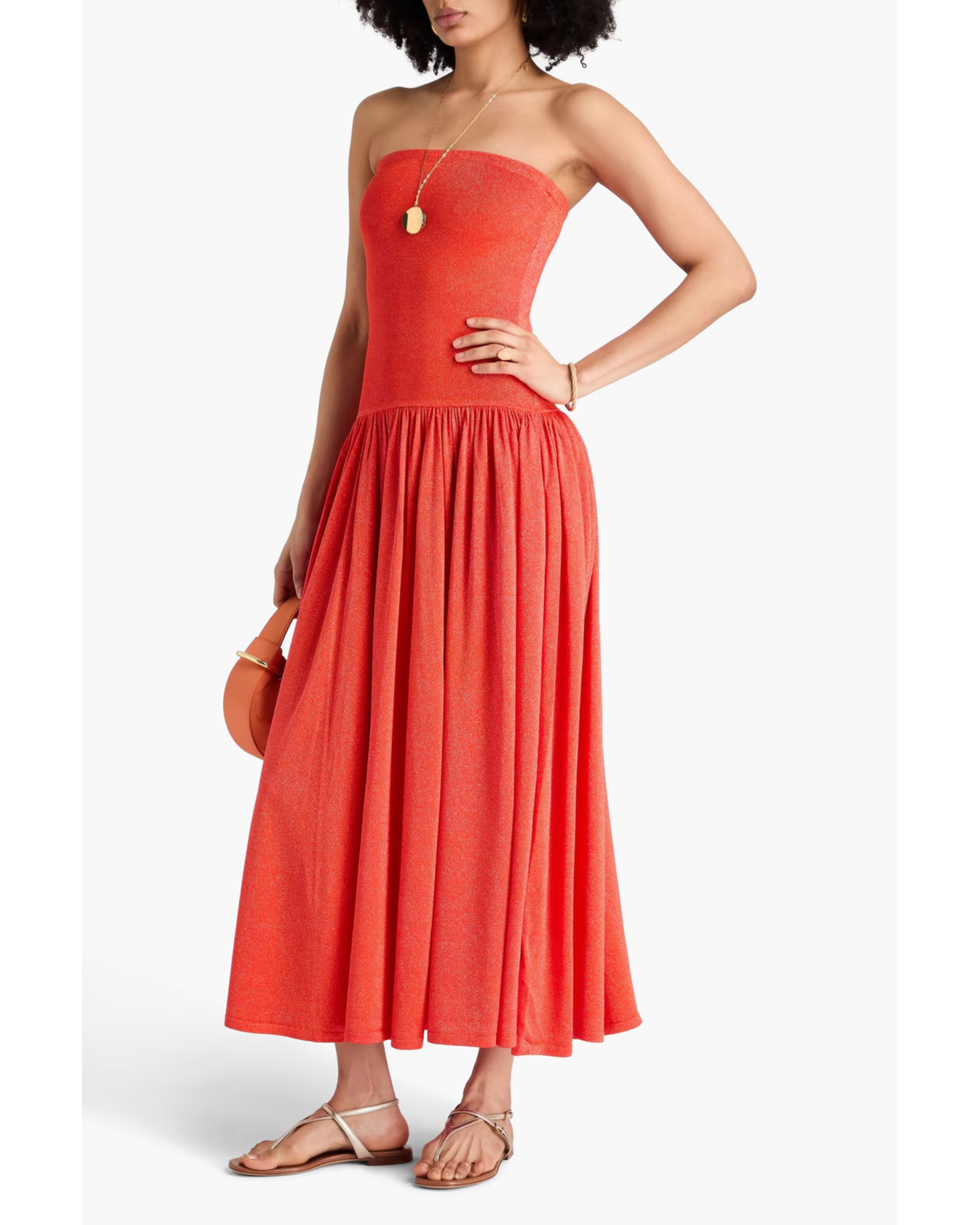 Strapless Metallic Stretch-knit Maxi Dress