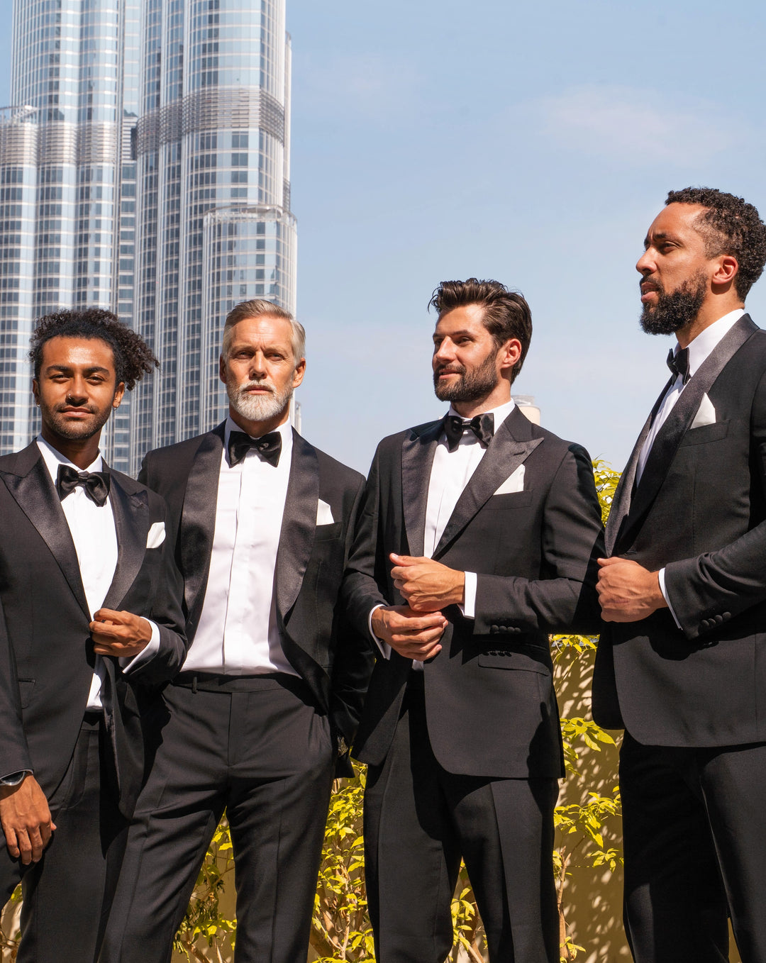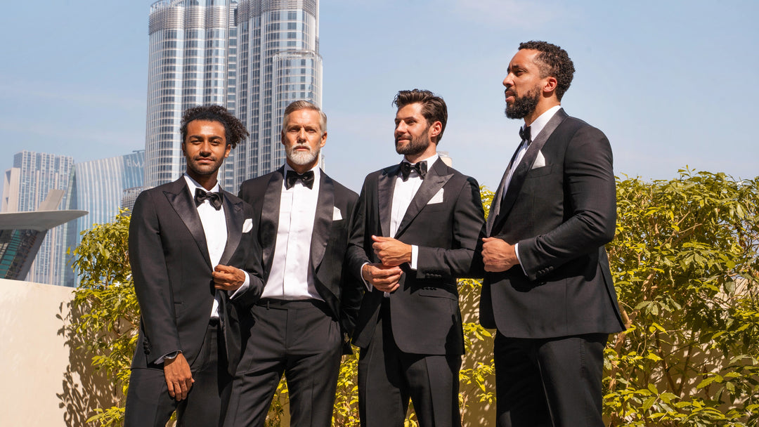 Rent the full tuxedo outfit, including bow tie and pocket square from AED 1,500