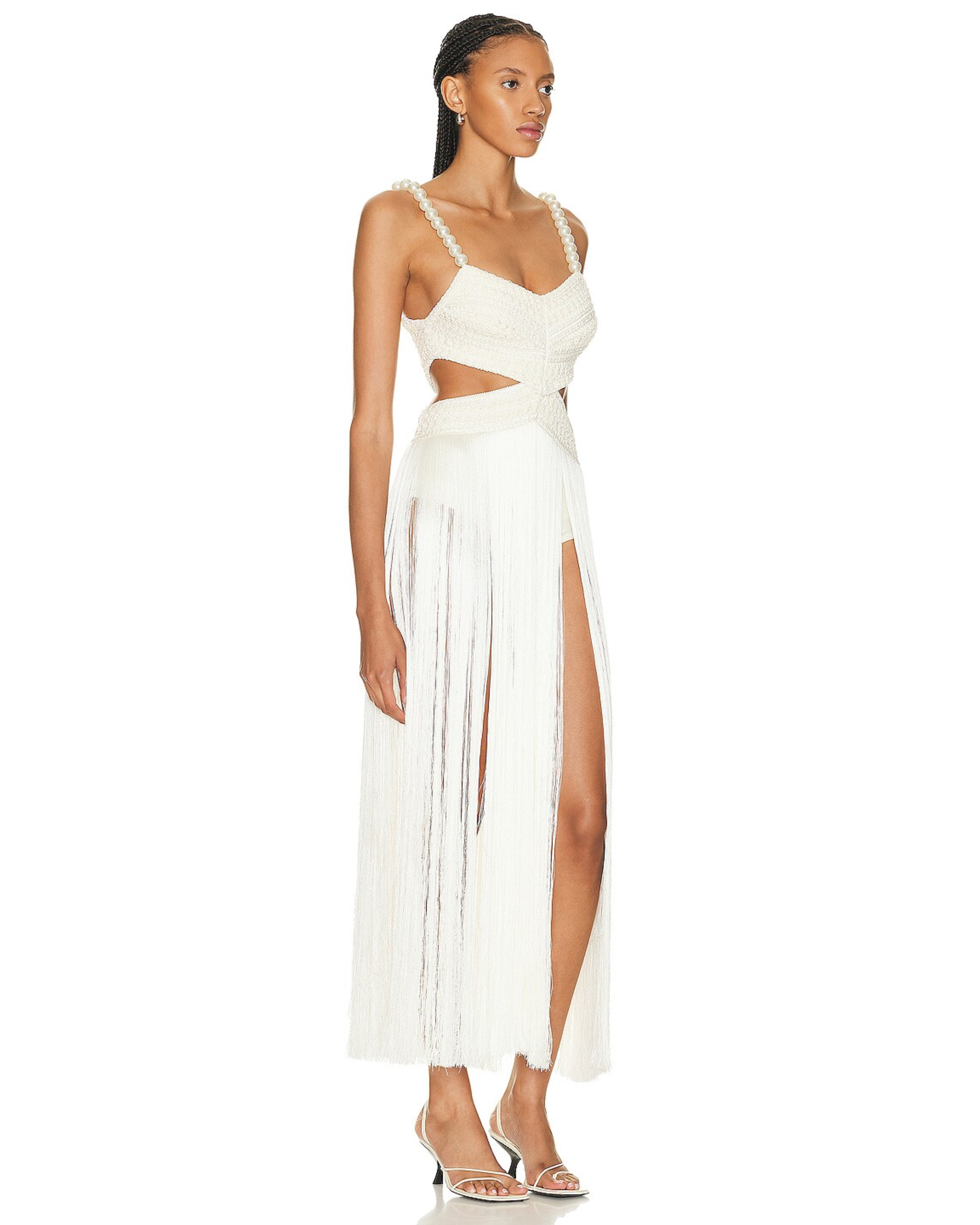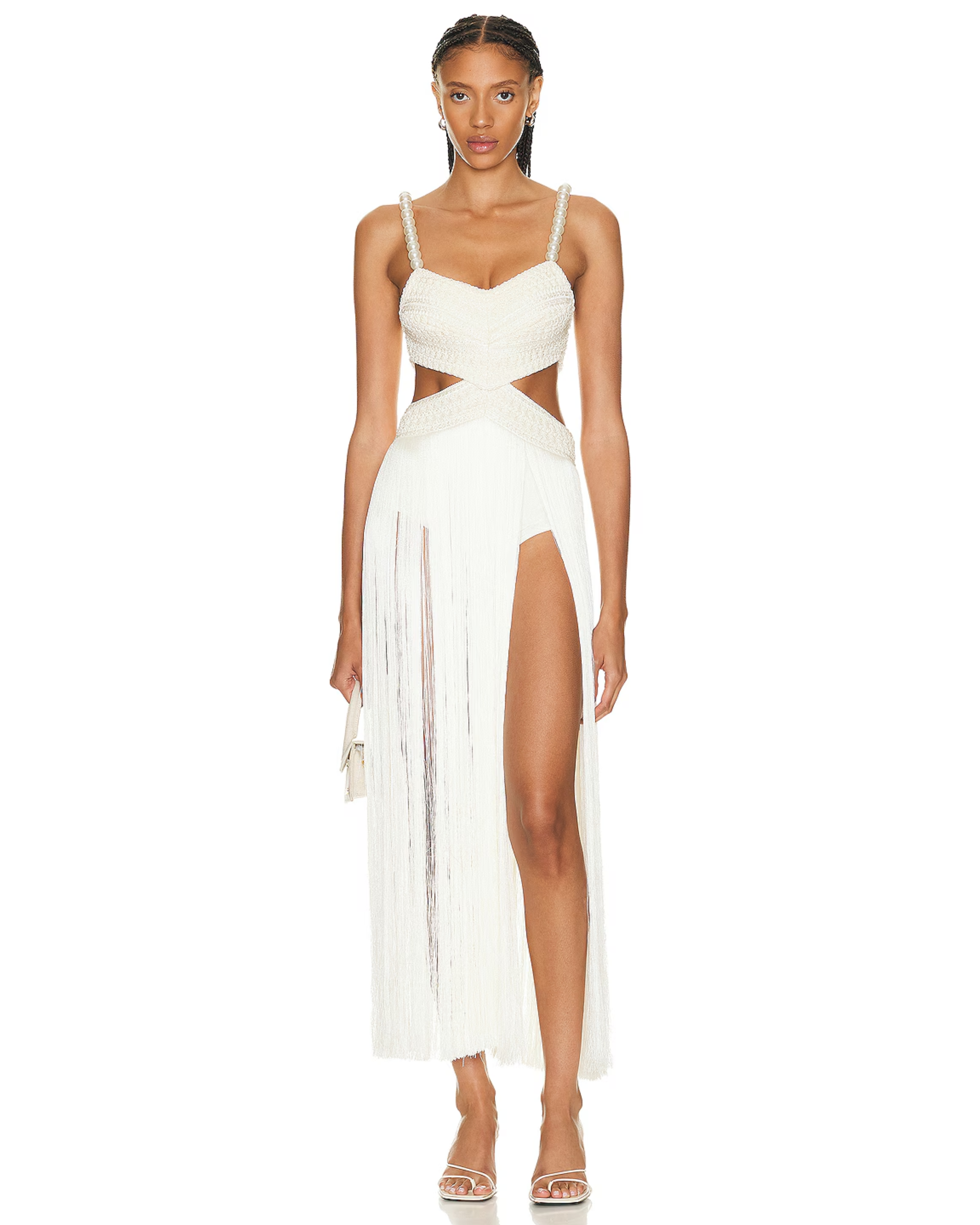 - Self: 85% polyamide, 15% viscoseFringe: 100% polyesterLining: 87% polyamide, 13% elastane.
