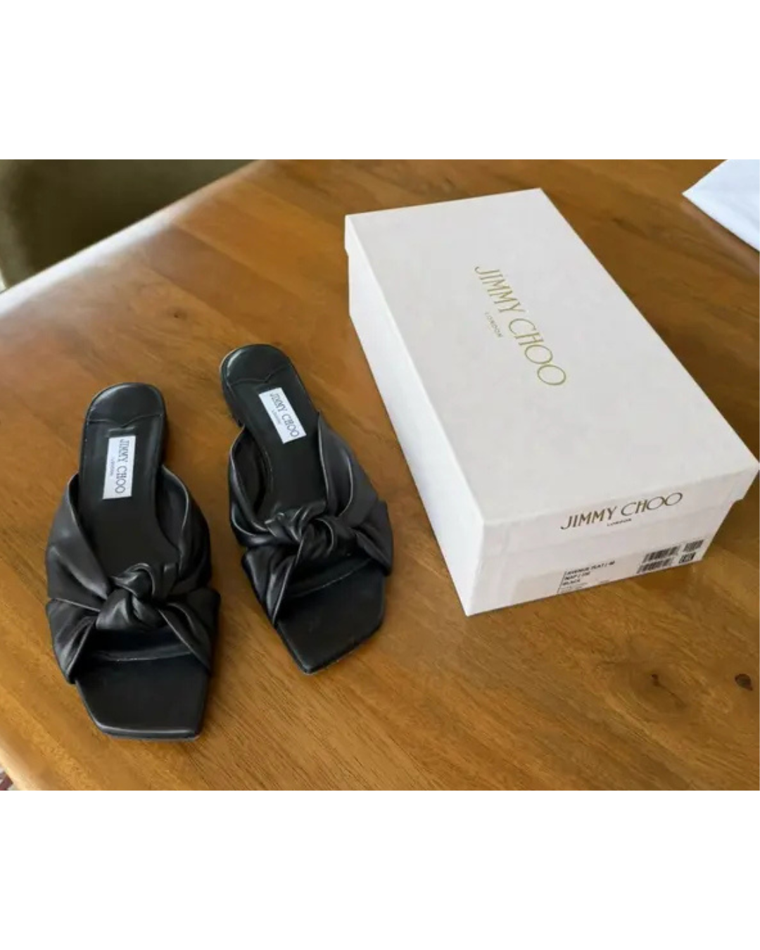 Slip into the Avenue leather sandals from Jimmy Choo for effortless sophistication. Made from butter-soft nappa leather that's ruched and knotted at the square toes, they're set atop barely-there heels.
