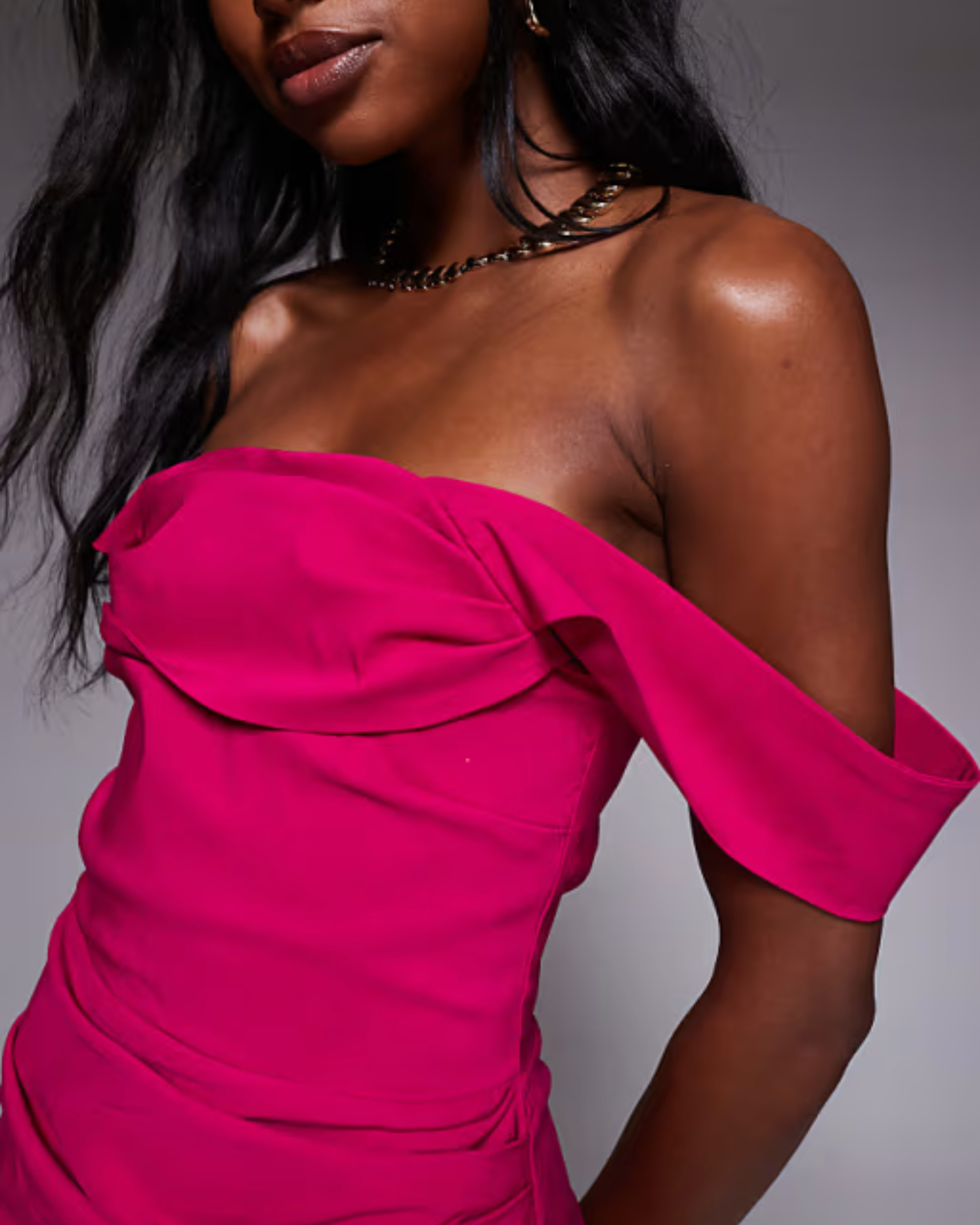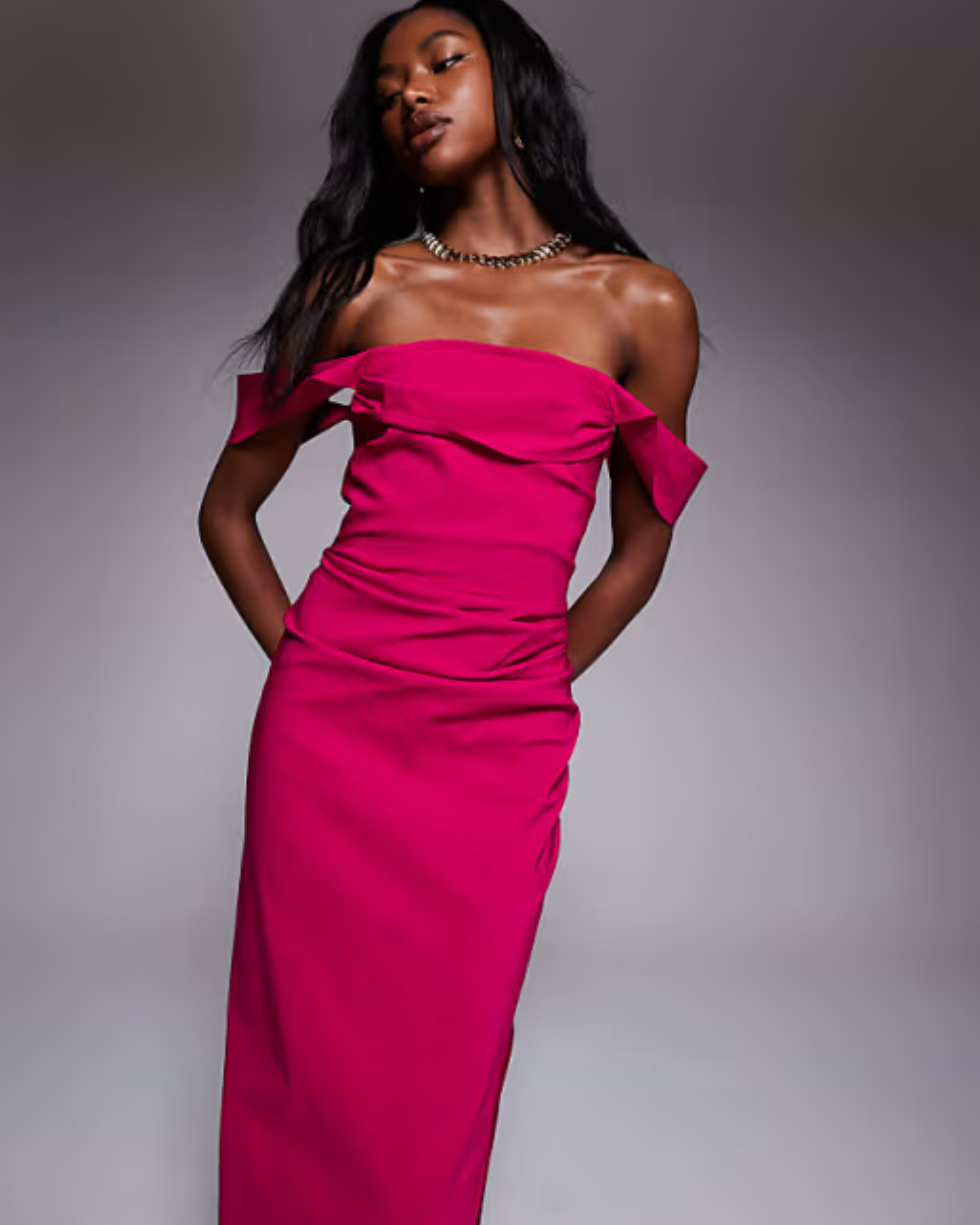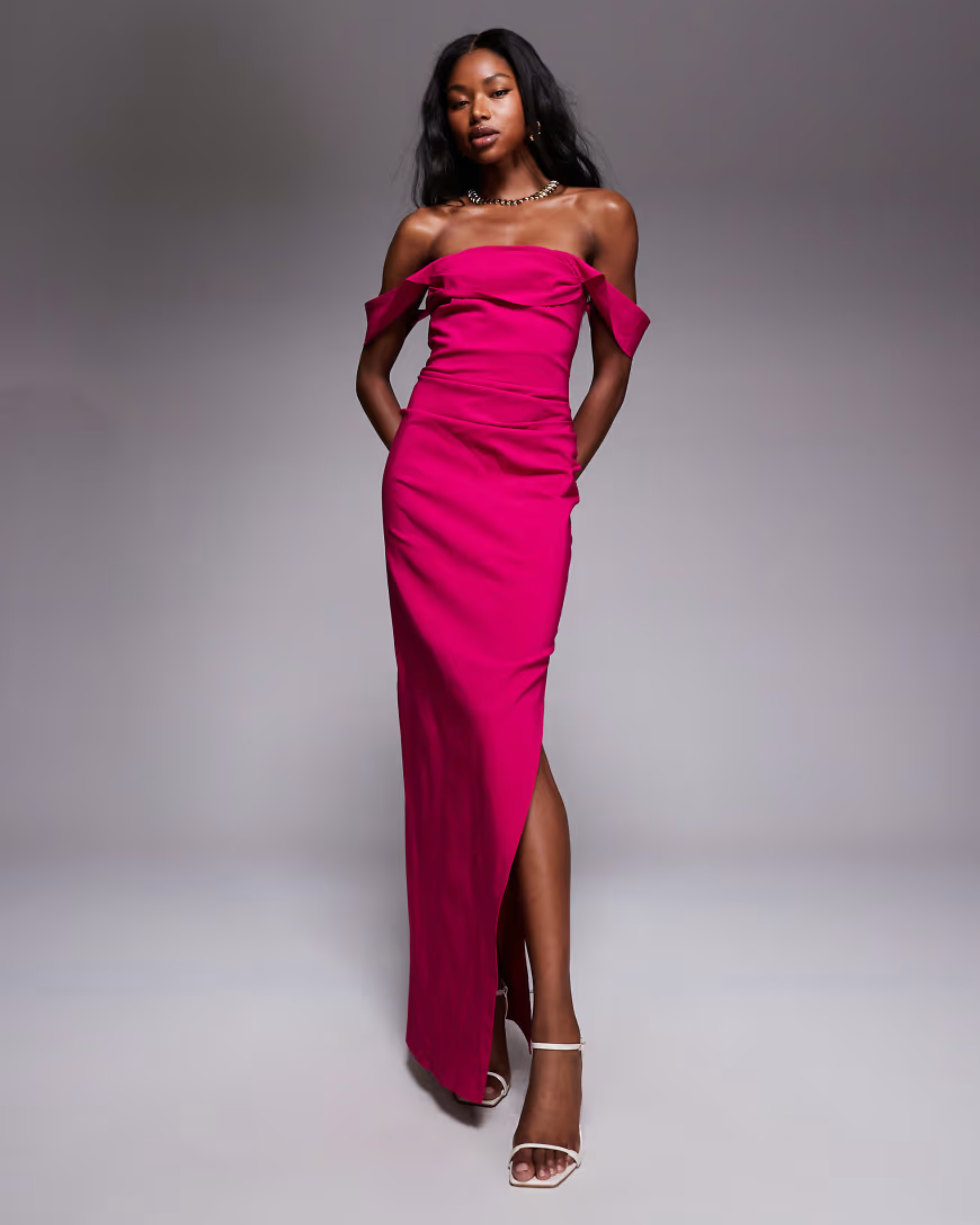 Bengaline Off Shoulder Ruched Waist
