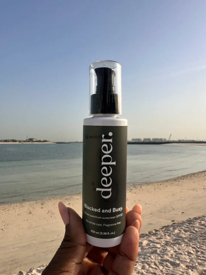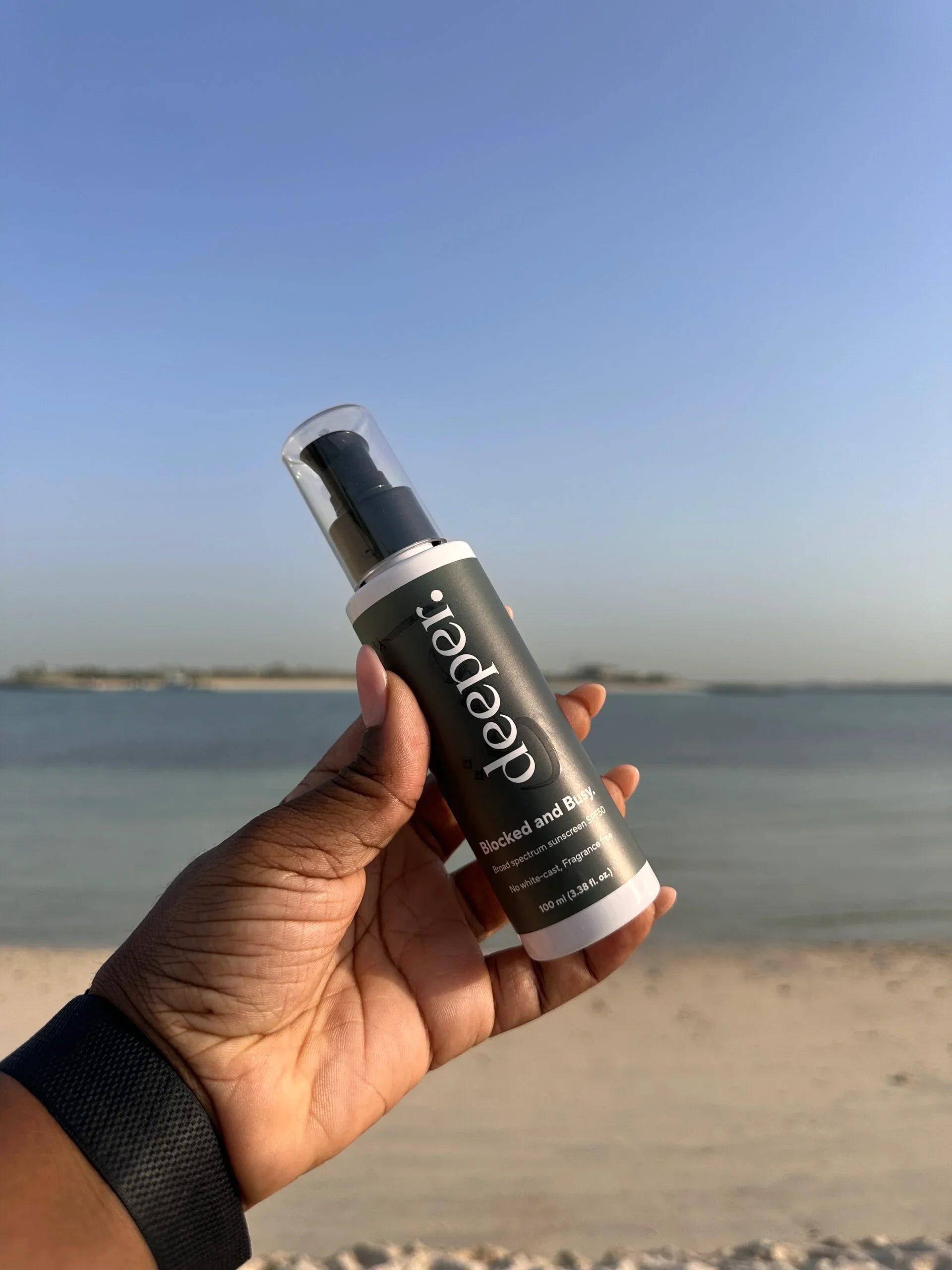 Blocked and Busy is your skin's daily defense. This sunscreen is designed with melanated skin in mind but can be used by everyone. It's broad-spectrum SPF 50 - which means you're shielded against the harshest sun rays â“ all without a trace of white cast.