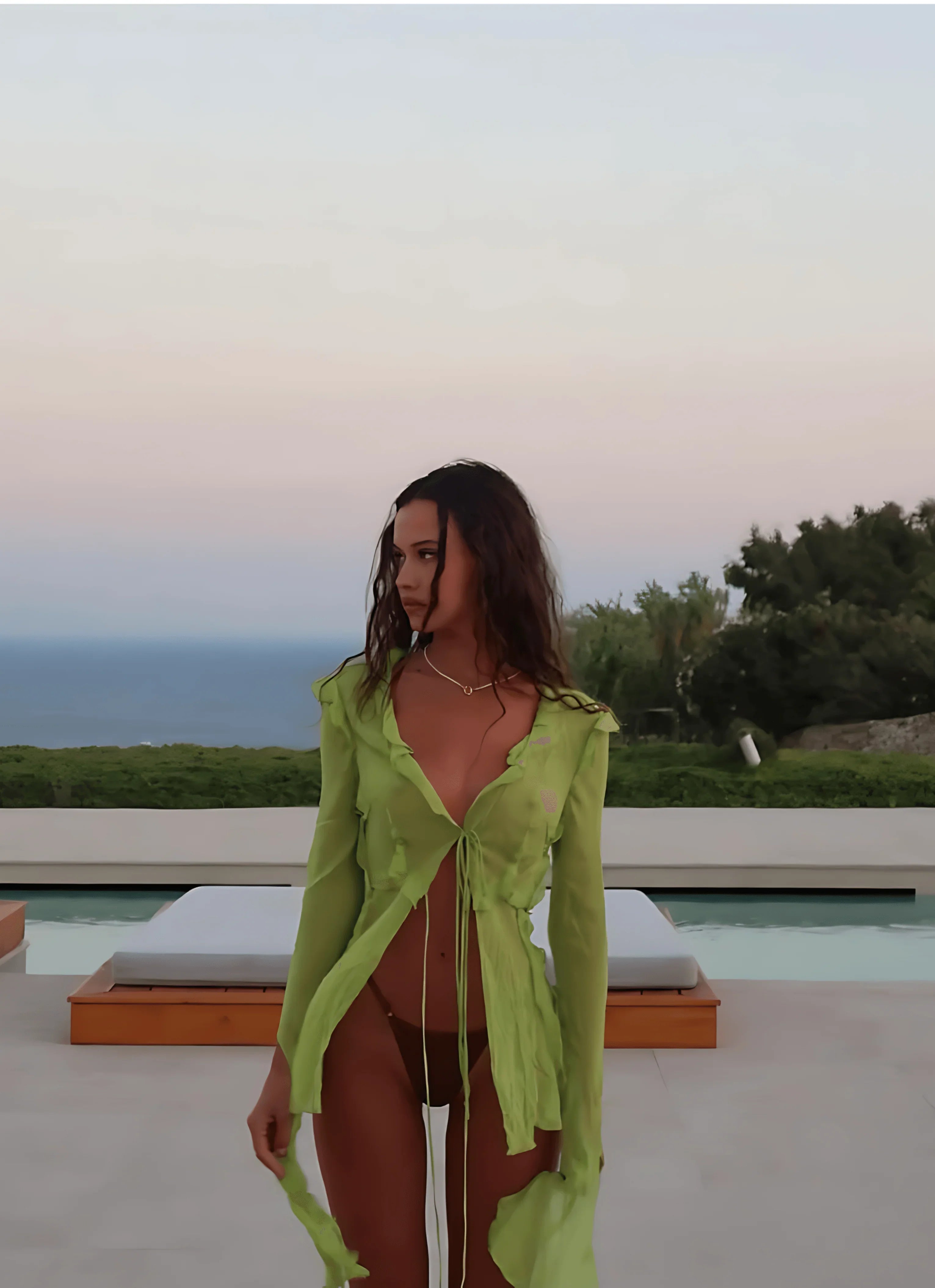 A signature Rat and Boa cult blouse crafted in a zesty lime green color.