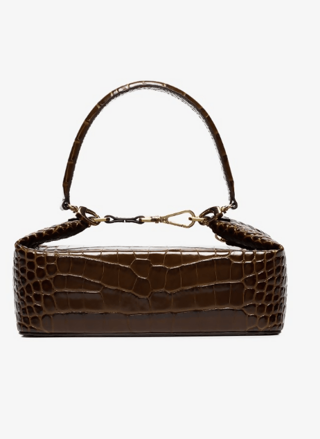 Brown Olivia Crocodile Embossed Leather Box Bag