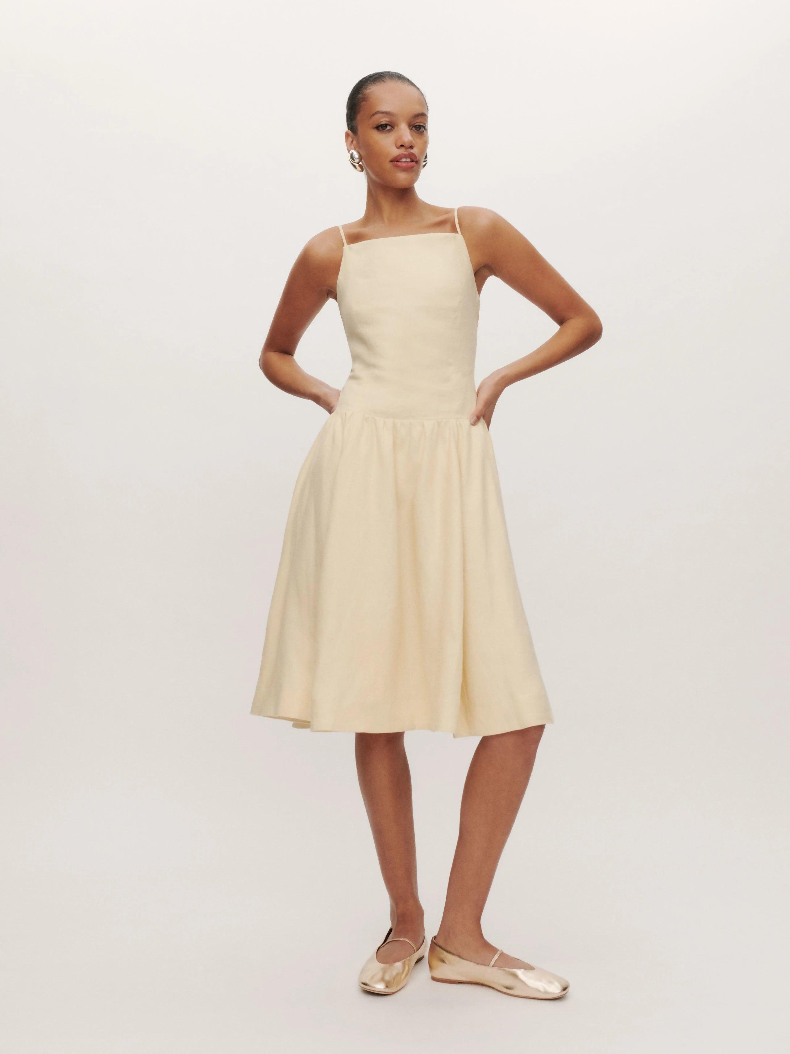 Big easy. Shop the Clarabelle Linen Dress from Reformation, a sleeveless midi length dress with a drop waist.