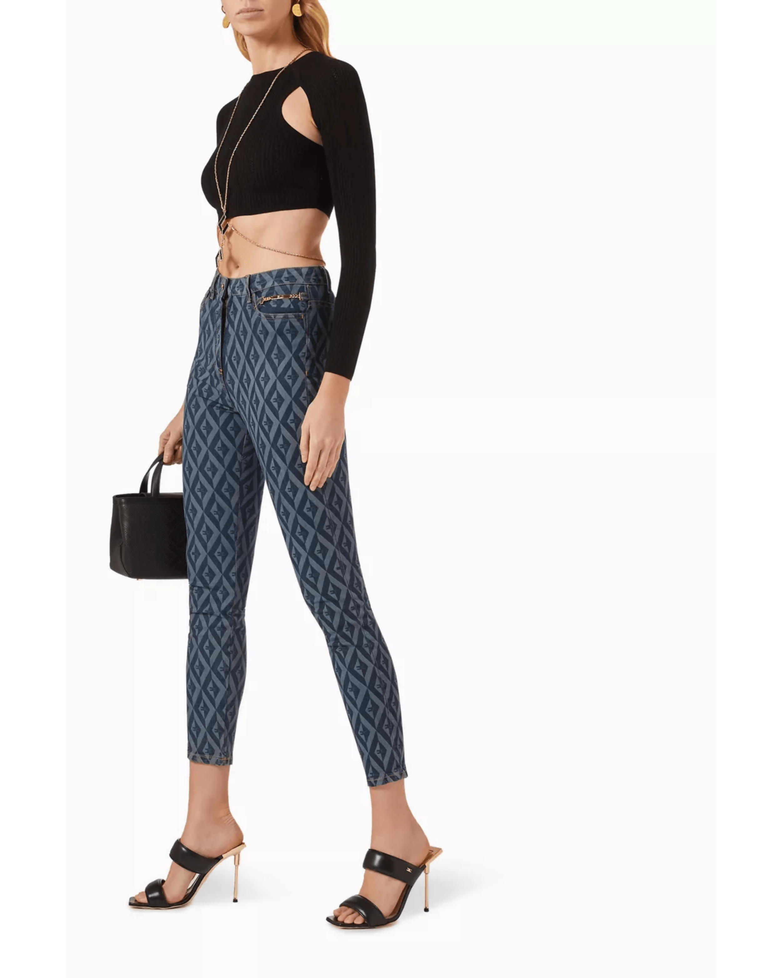 Cut for a timeless skinny fit, these Elisabetta Franchi jeans are elevated by an all-over logo print that imbues this wardrobe staple with a recognisable branded finish. The pair sits high at the waist and fastens with a zip and button closure.