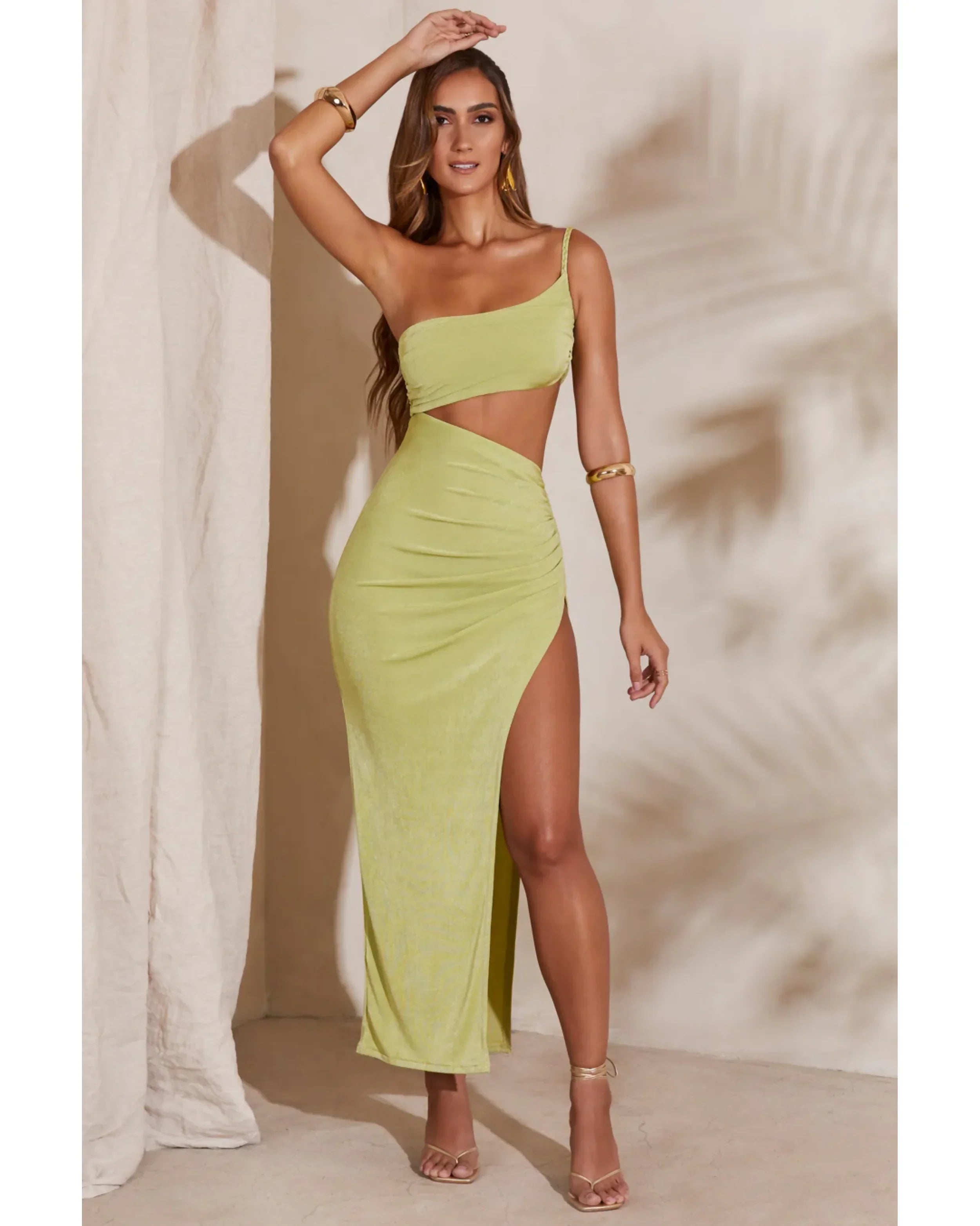 Statement summer dressing just got a lot easier with Ishtar, our ultra-luxe maxi dress. The Ishtar maxi dress features an asymmetric neckline and single braided shoulder strap that’s giving us all the summer feels. With a fully ruched bust and side ruching beneath a striking side cut out, Ishtar is complete with an asymmetric maxi skirt that features an alluring thigh high split. Designed to stand out, the Ishtar maxi dress has everything you need to cause a stir this season.