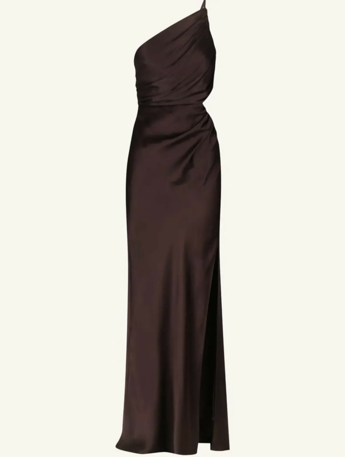 La Lune Gathered One Shoulder Maxi Dress in Cocoa