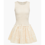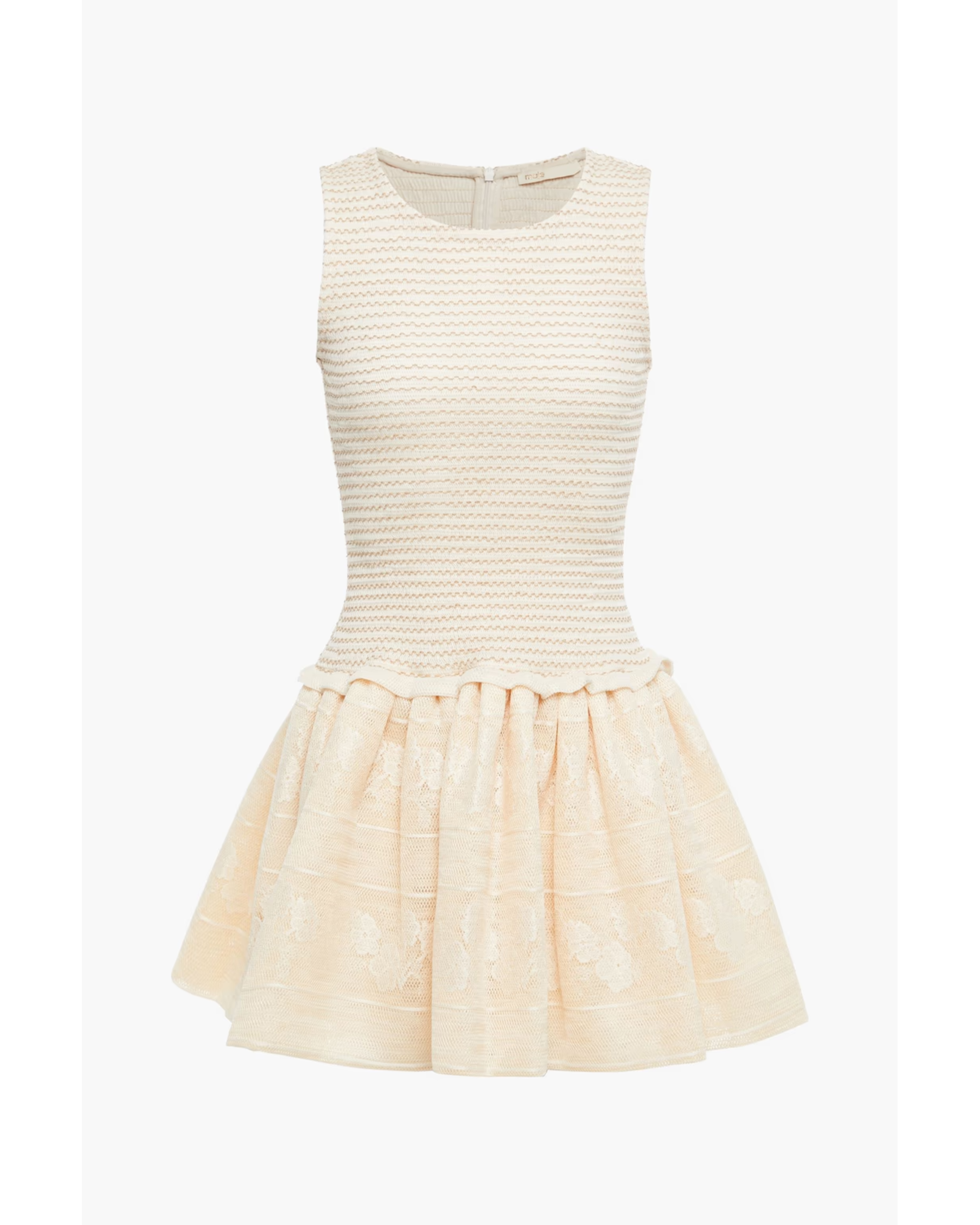 Lace-paneled Gathered Stretch-mesh Mini Dress