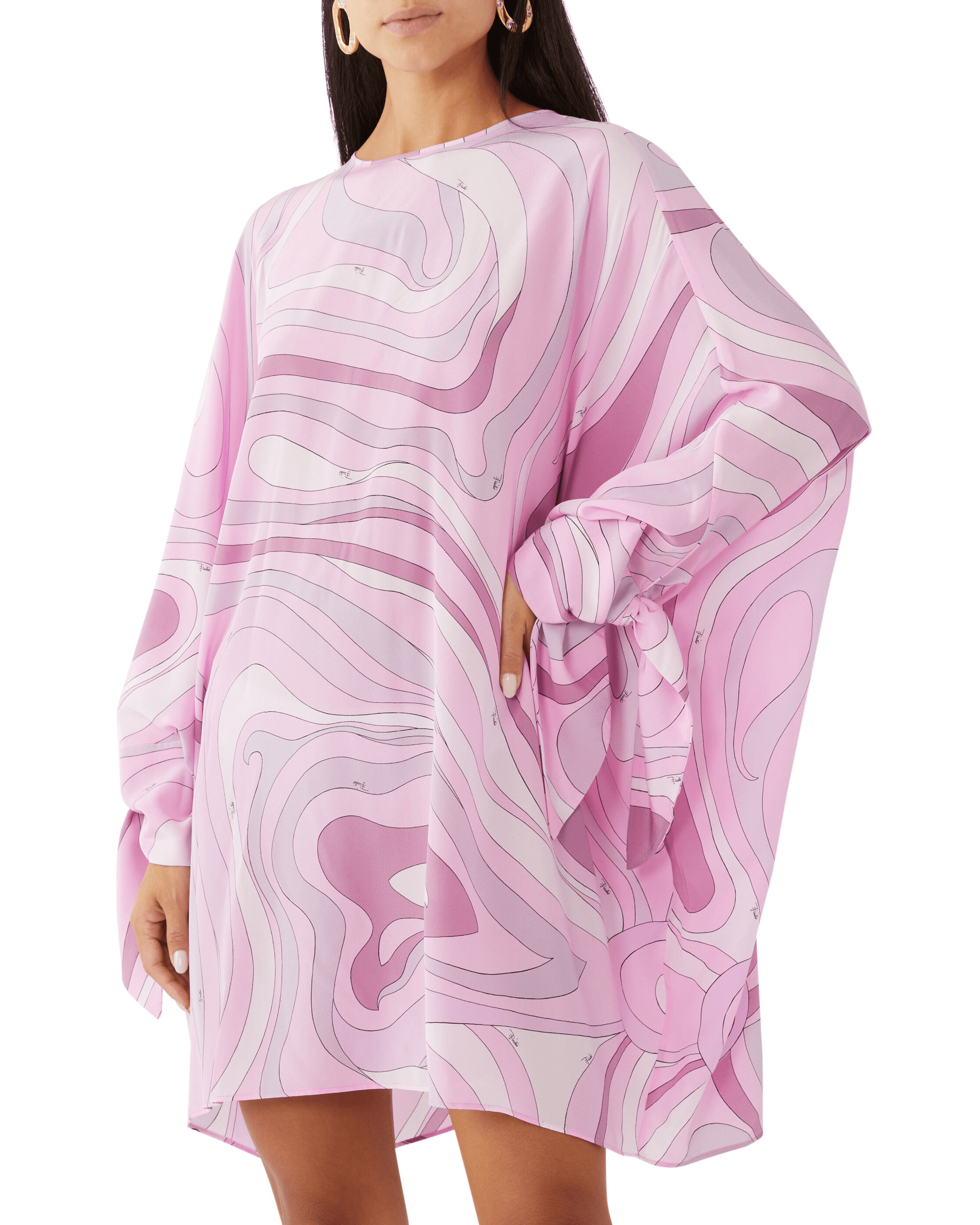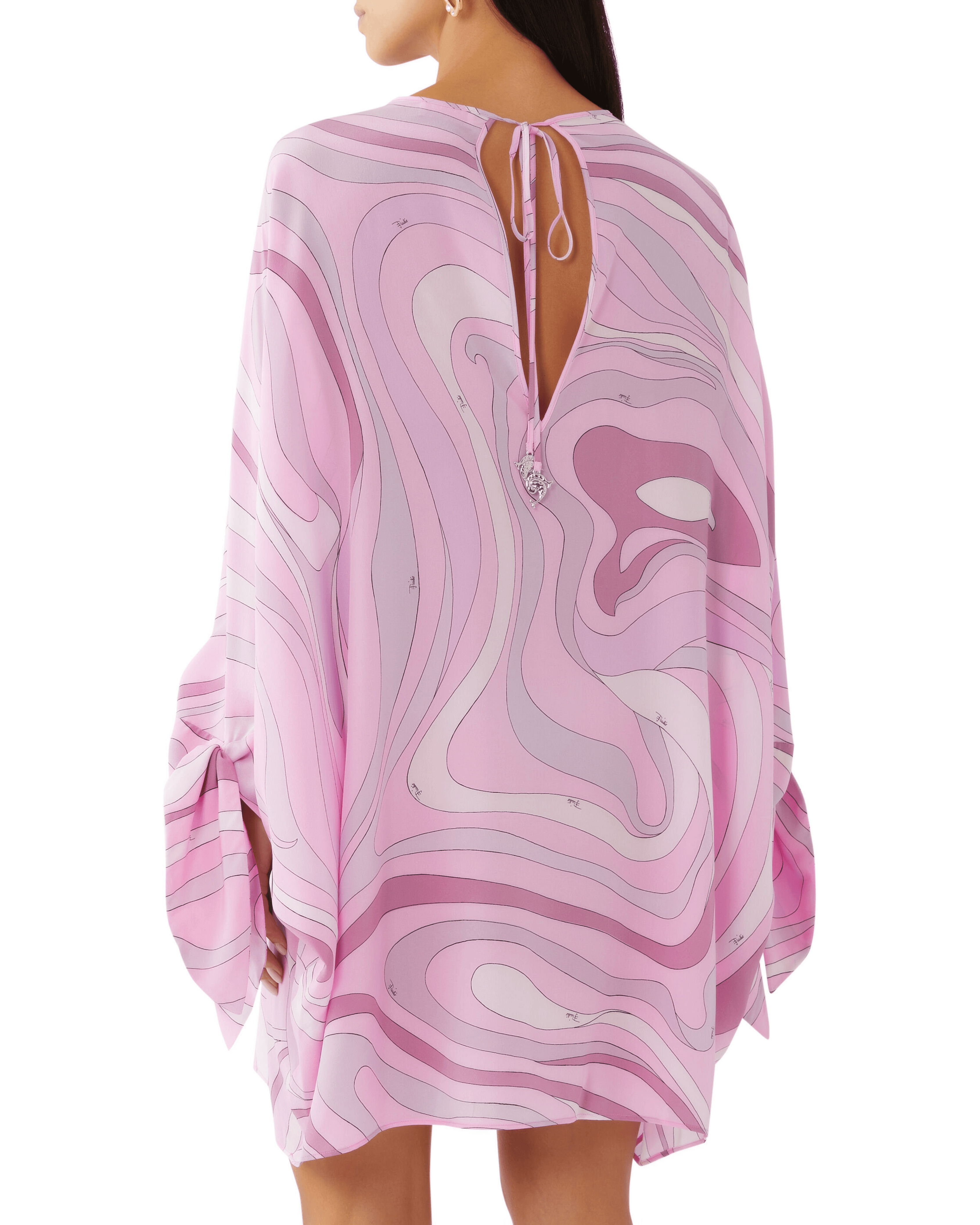 Experience effortless luxury with the Marmo Silk Kaftan by Pucci. This stunning piece, crafted from premium crepe de chine fabric, combines elegance and comfort in a breezy, beach-ready design. The soft hue exudes sophistication, making it the ultimate choice for refined summer style. This kaftan features the brand’s signature attention to detail, with a graceful drape that flatters all silhouette. Ideal for sun-soaked getaways, its relaxed fit offers ease and elegance, whether you're walking along the shore or enjoying a sunset cocktail by the pool.
