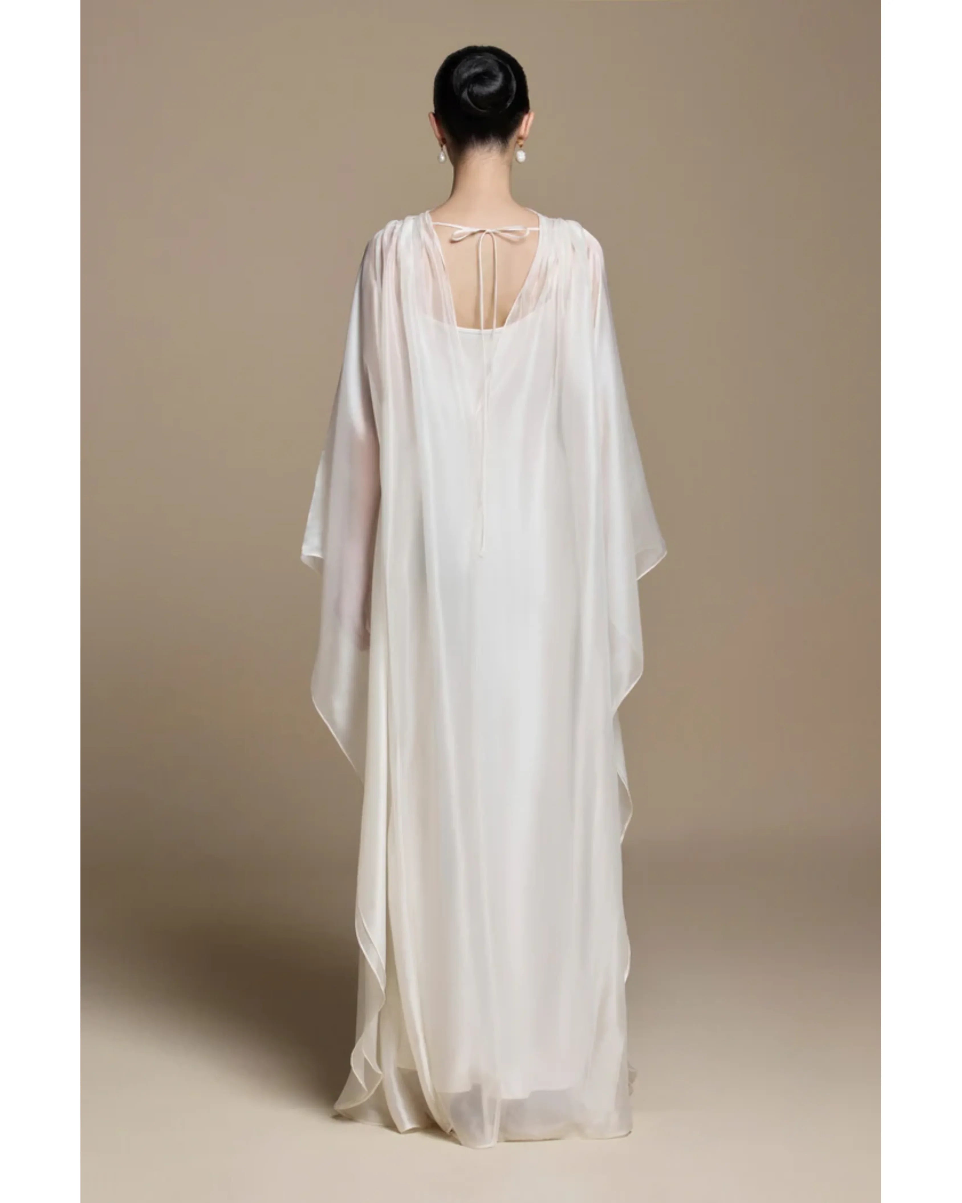 - Thin silk overlay on a light cream silk base.