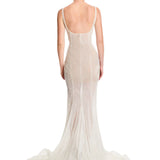 Every hour is golden hour in Nile. Nile shines thanks to its bespoke Chosen by KYHA lineal beading, a structured, corseted bodice with cut away detail and dipped waist. Complete with fit and flare skirt, Nile is a modern icon in the making.