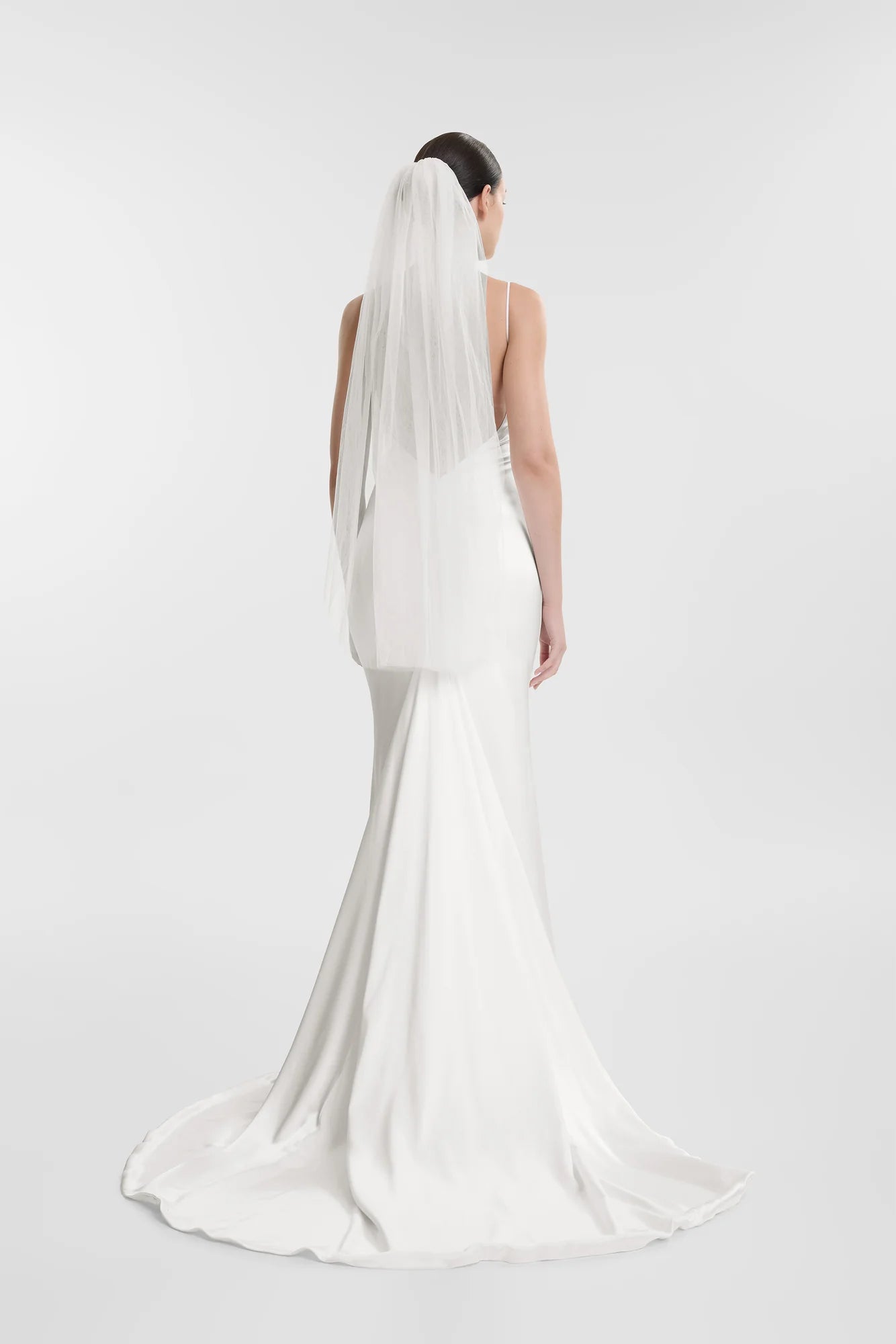 Iconic sixties glam? You in the Paloma veil, bringing fingertip-length cool to your modern bridal moment. Crafted from the highest quality tulle in bright ivory, this is the perfect finishing touch.