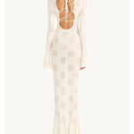 Featuring fluted long-sleeves and a lace-up back. Constructed from a fine cotton-based jacquard knit featuring our signature Delilah motif.
