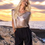 Style this piece tucked into high waisted trousers/jeans/shorts/skirt.
