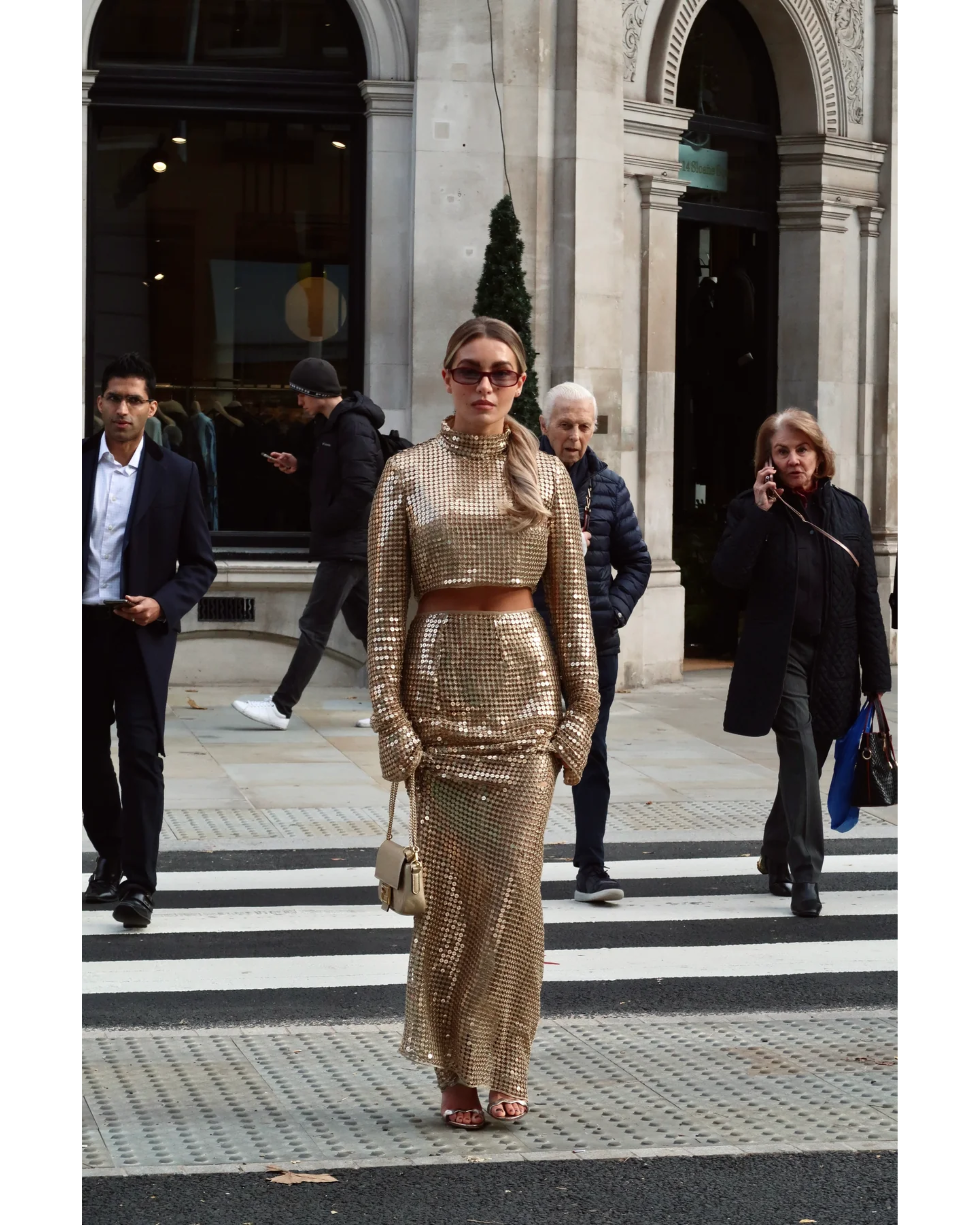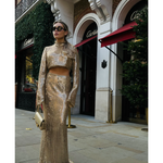 A stunning limited edition version of our best selling set. This gold two piece is a must have for the festive period. Only available to shop in the month of December. Let your outfit be as unique as you.