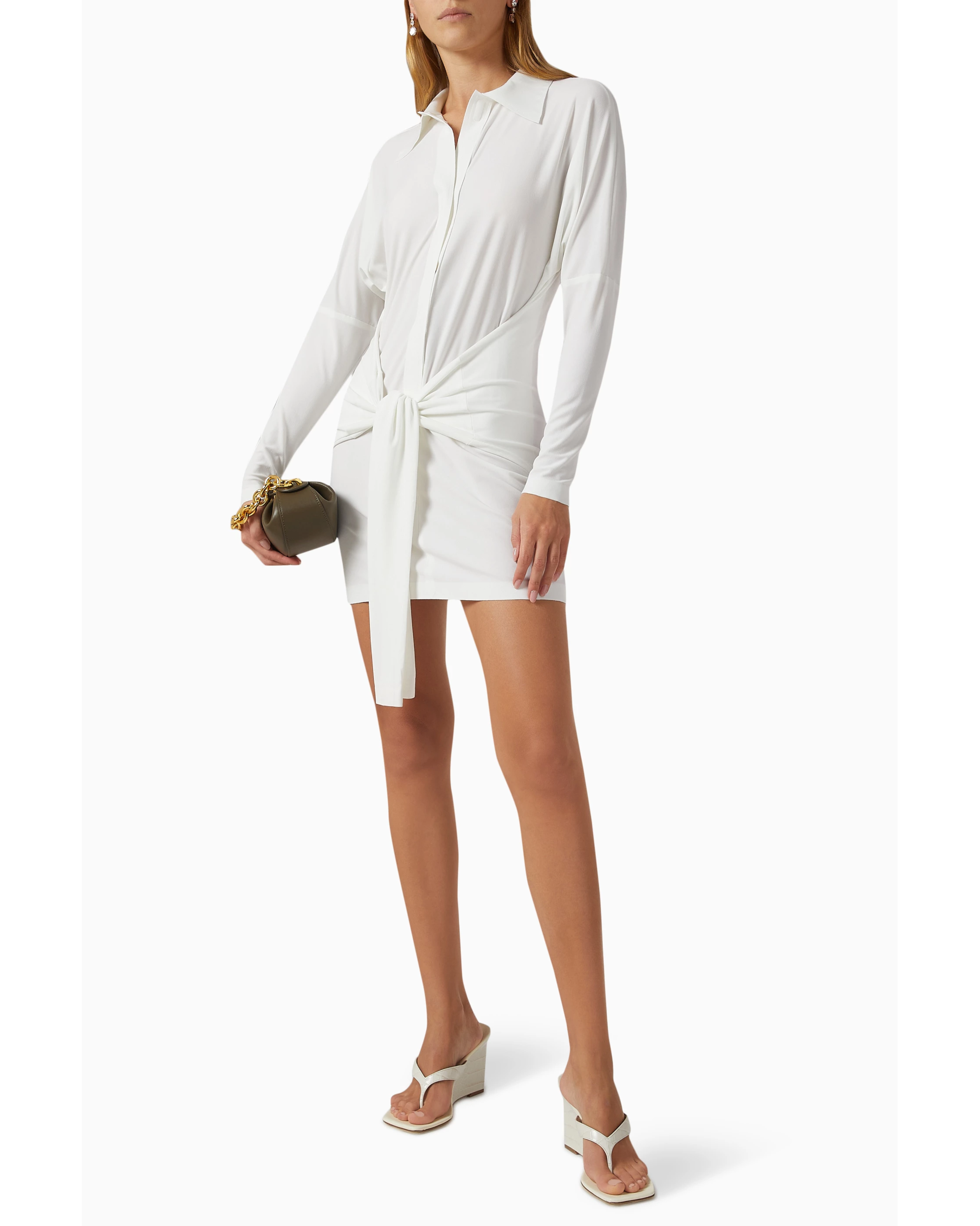 Effortless elegance is Norma Kamali's forte, as the TY mini dress proves. Made from the label's signature stretch fabric, it is elevated with subtle details, from a spread collar and sleeve-effect waist tie to the raw-cut edges.
