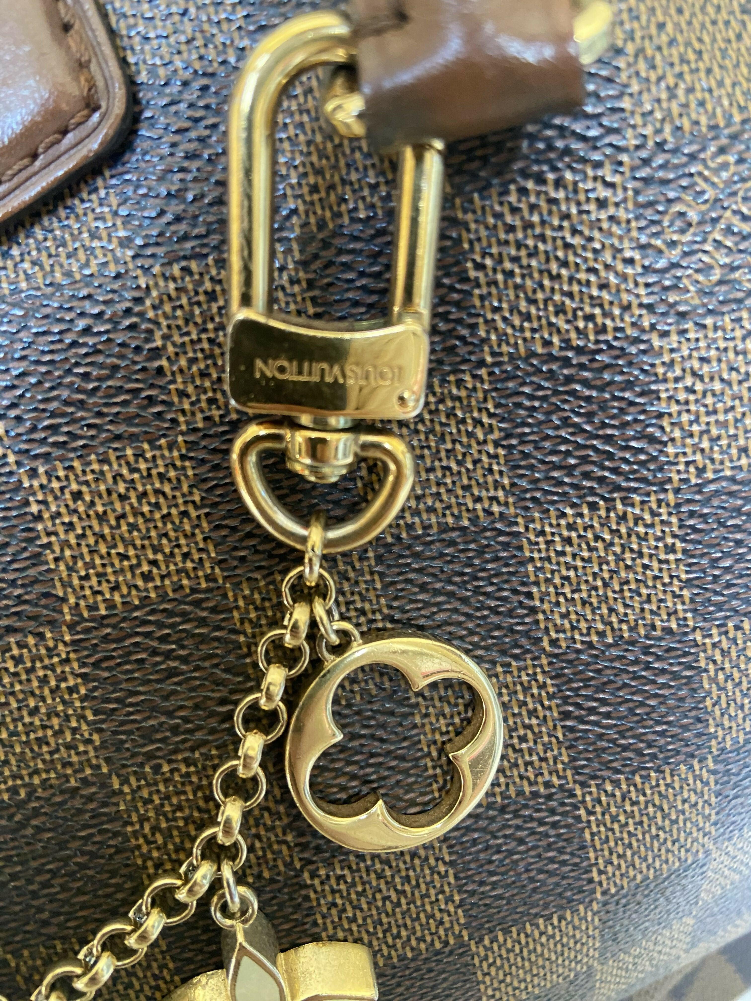 Excellent condition, gently used and shows normal signs of wear such as fading on the metal parts and patina on the leather, pictures attached. The interior is made of a burgundy lining. The top includes a zip closure and key holder with padlock. Extra padlock provided.Includes the charm which was purchased separately for AED 2,000.